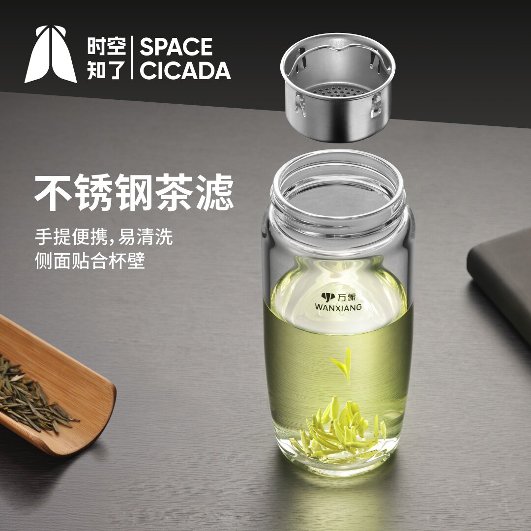 万象时空知了鹅蛋玻璃杯单层加厚大容量男士便携泡茶杯茶水分离