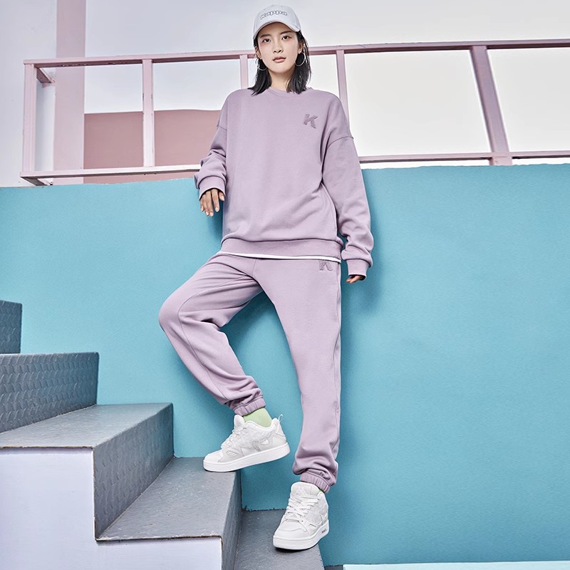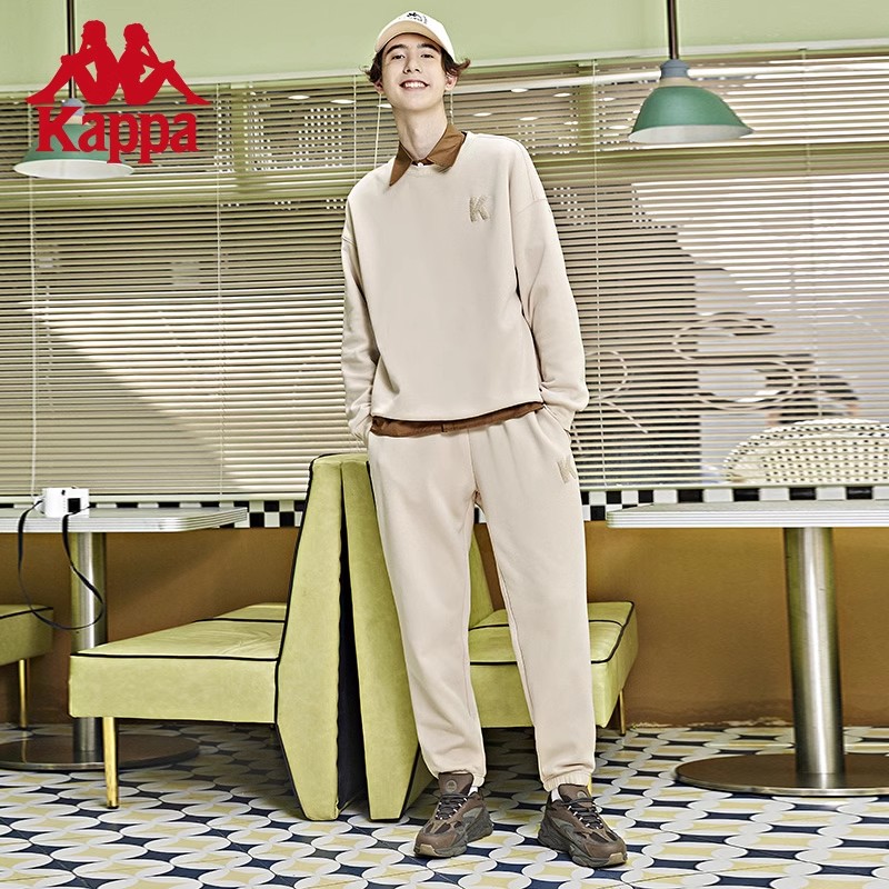 Kappa卡帕笑脸运动套装新款男女加绒休闲套头卫衣卫裤K0CY2XL19P
