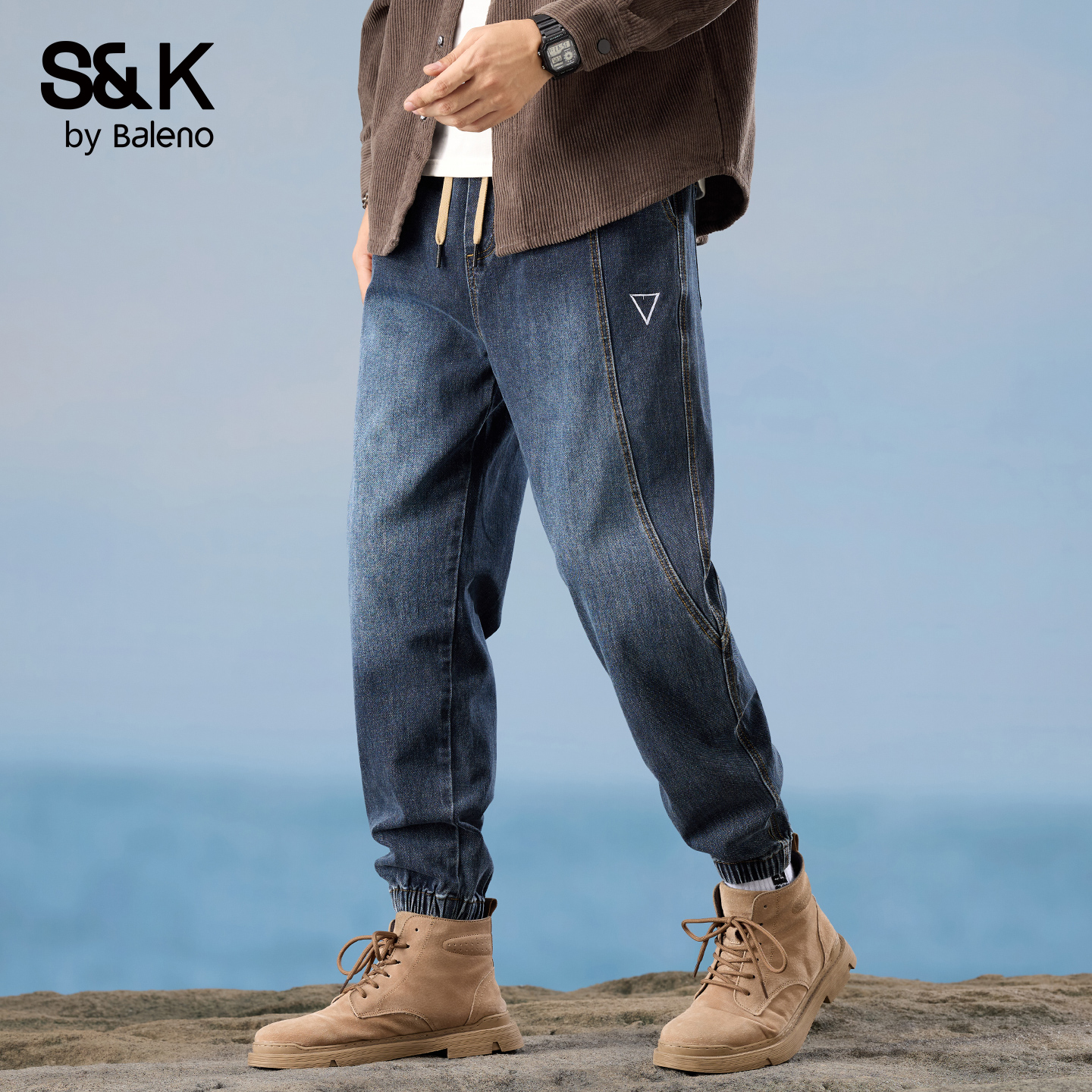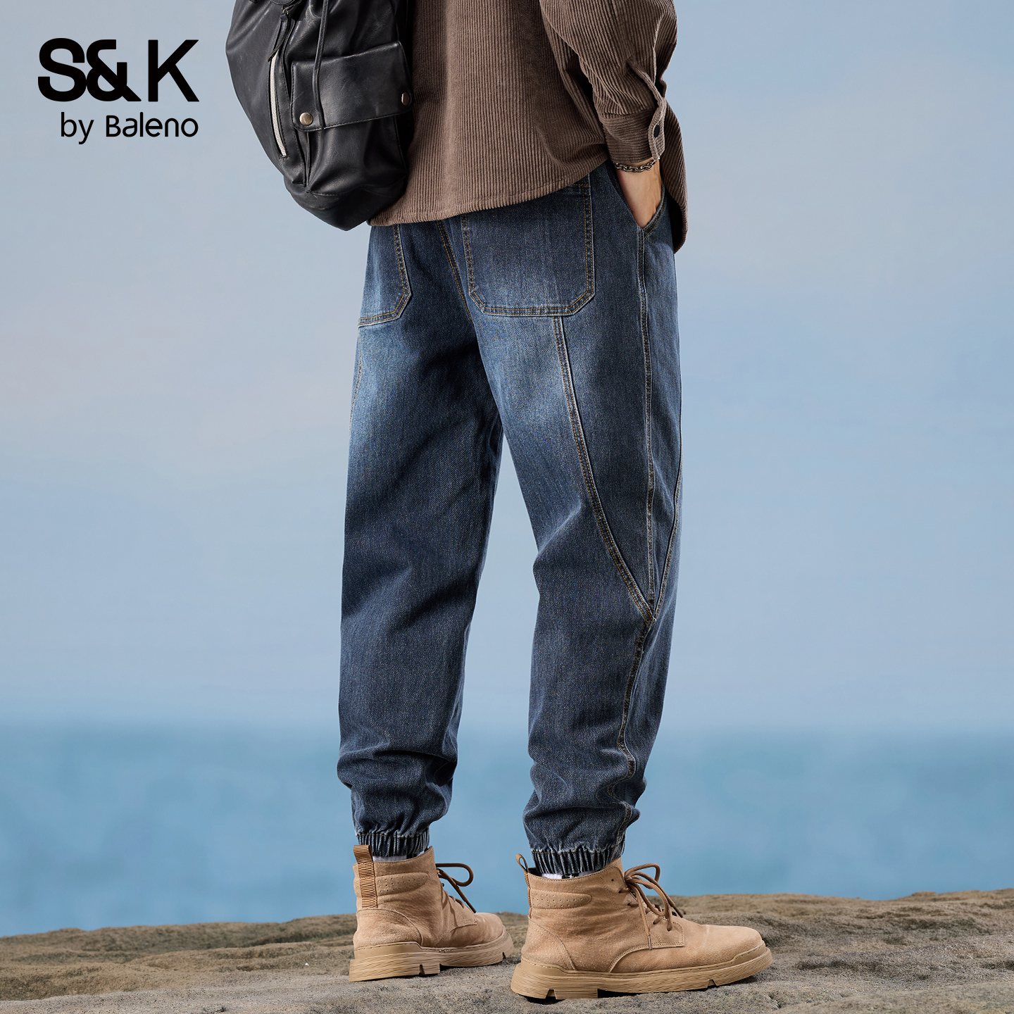 班尼路SK美式束脚牛仔裤男士春秋季潮流休闲宽松百搭阔腿水洗裤MS