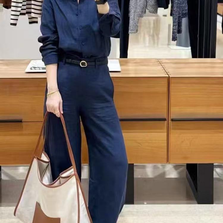 比利时亚麻衬衫+直筒长裤