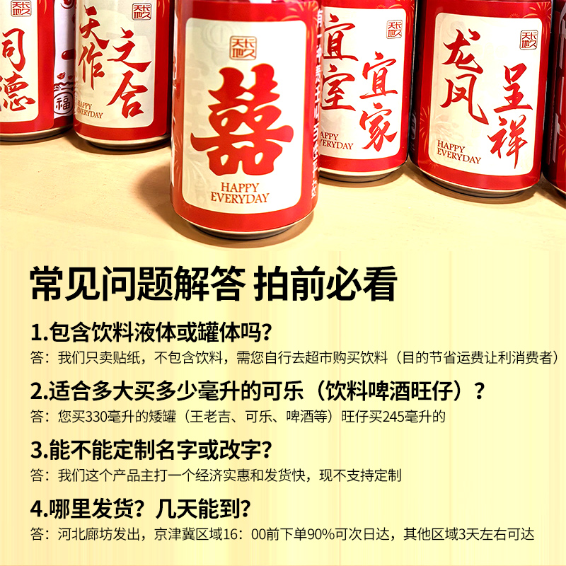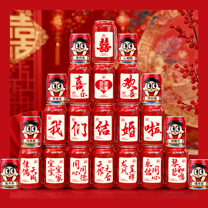 可乐定制订婚结婚贴纸 自粘不干胶婚礼用品大全婚宴布置摆台礼物