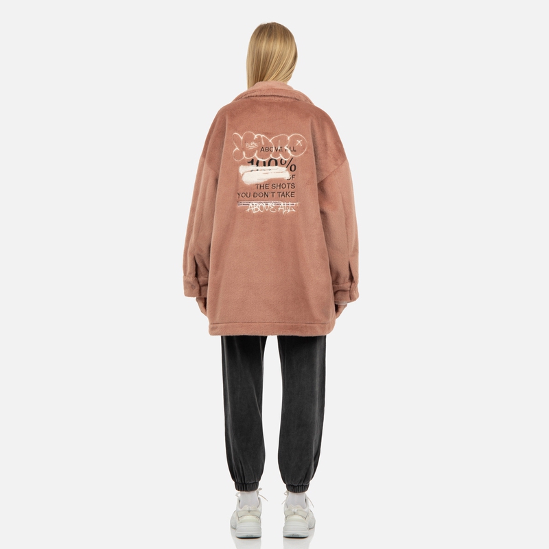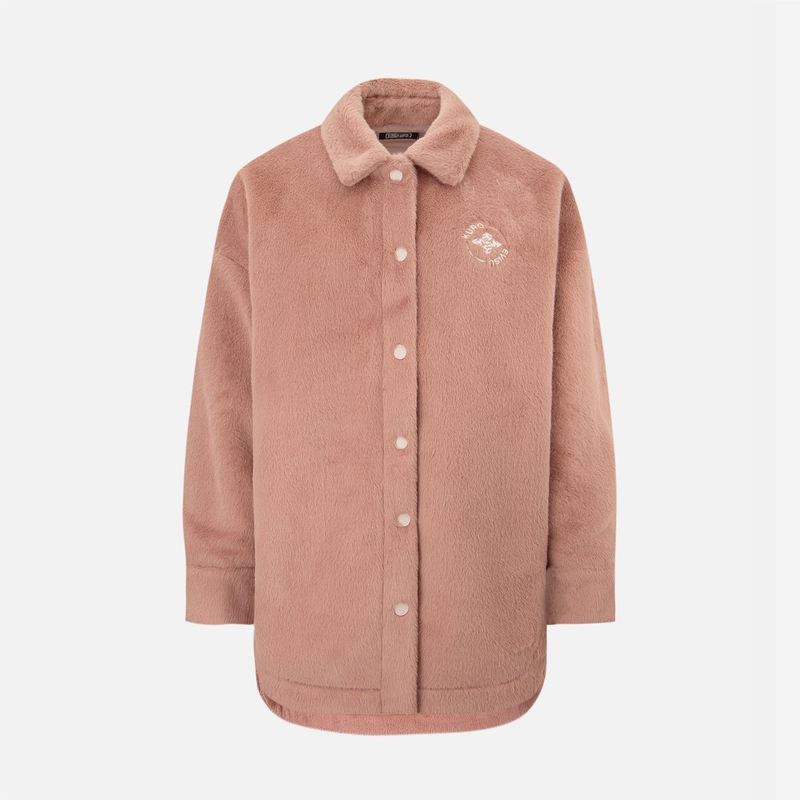 EVISUKURO秋冬女士logo刺绣休闲潮流时尚仿皮毛夹克加厚外套女