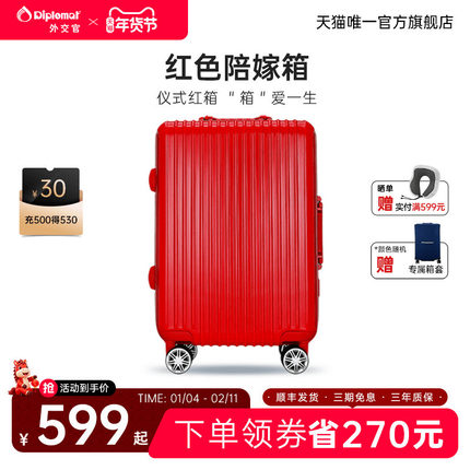 diplomat外交官红色行李箱结婚陪嫁箱拉杆箱万向轮新娘皮箱红箱子