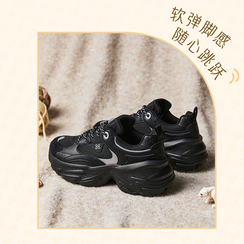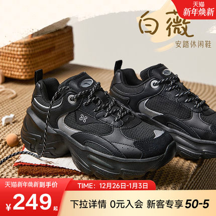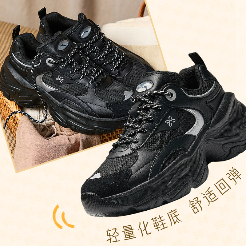 安踏白薇丨厚底复古休闲鞋女鞋2025冬季增高老爹鞋黑色百搭运动鞋