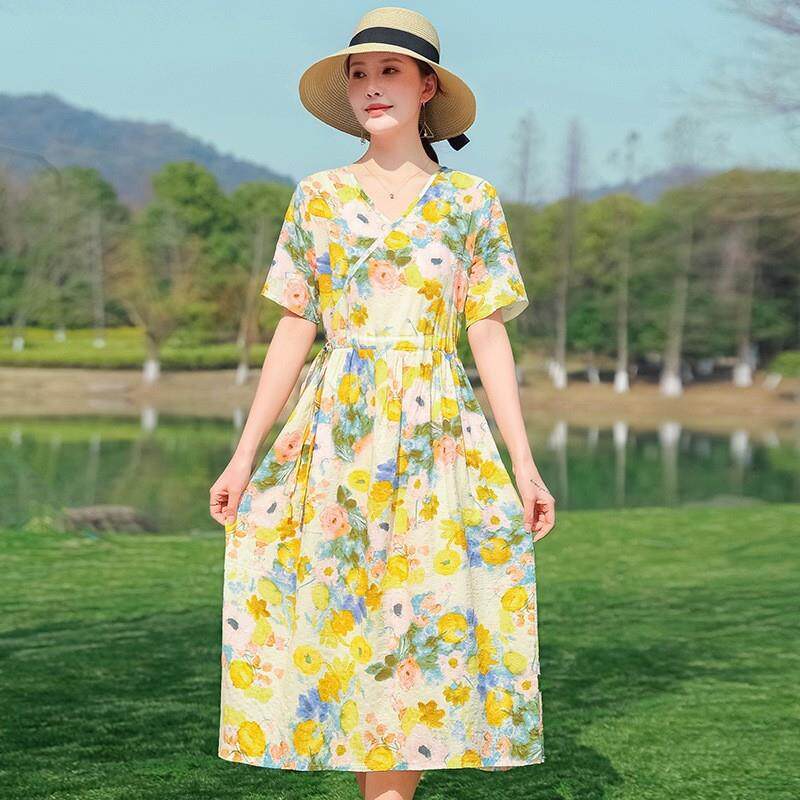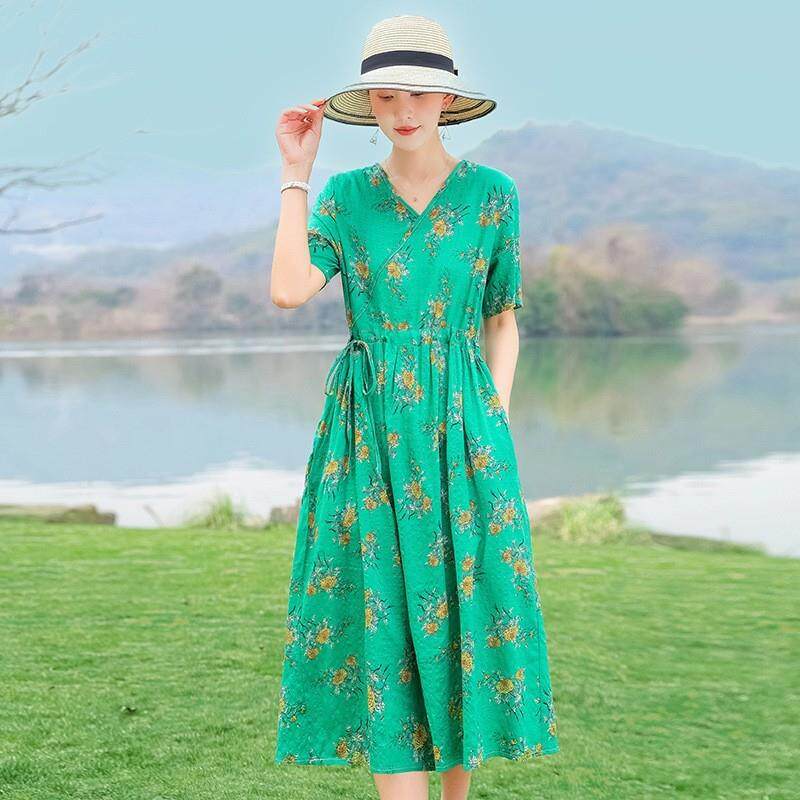 棉麻中洋气时尚显瘦海边裙夏季2025长裙连衣裙度假人造棉沙滩新款