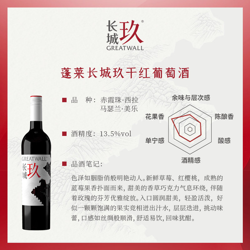 长城玖干红美乐/西拉/赤霞珠/马瑟兰混酿葡萄酒6瓶红酒官方旗舰店