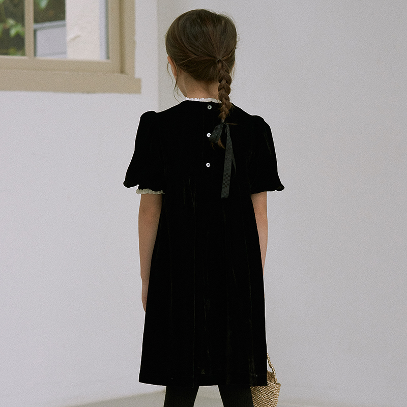 benebene韩国童装新款儿童天鹅绒连衣裙春夏女童纯色公主裙宝宝