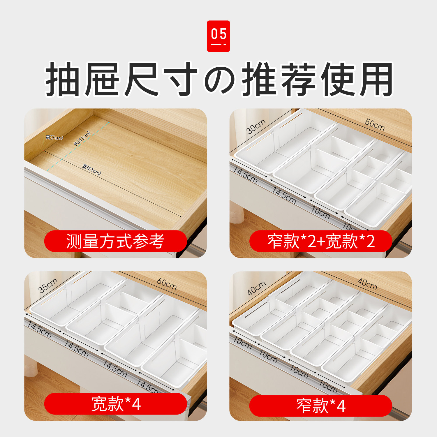 日本伸缩抽屉分类收纳盒分隔化妆品整理盒厨房橱柜柜内储物盒神器