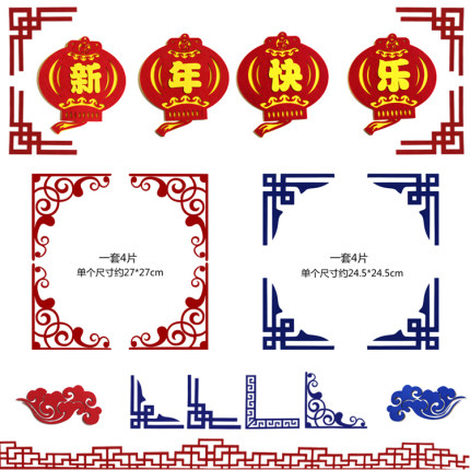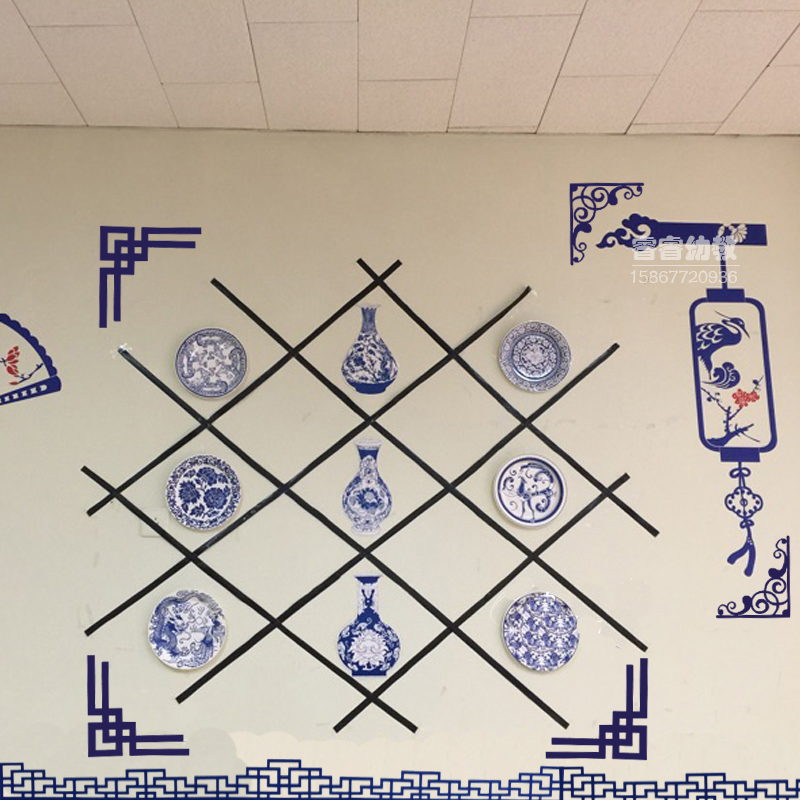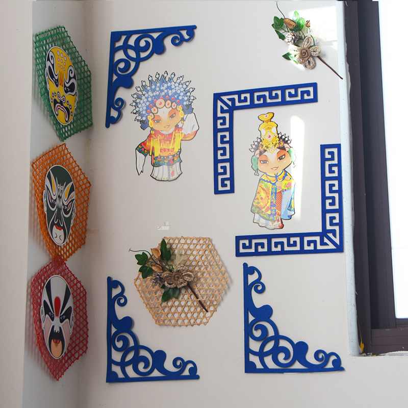 板报墙面边角角隅花边无纺布毛毡节日装饰中国风青花主题环境布置