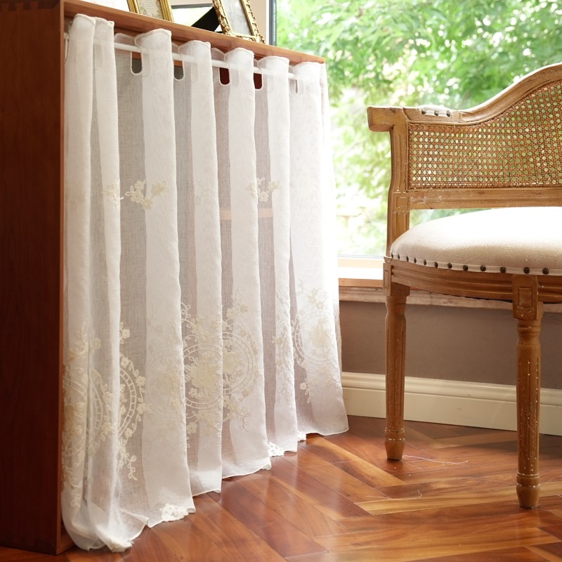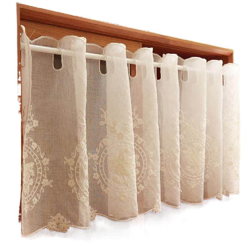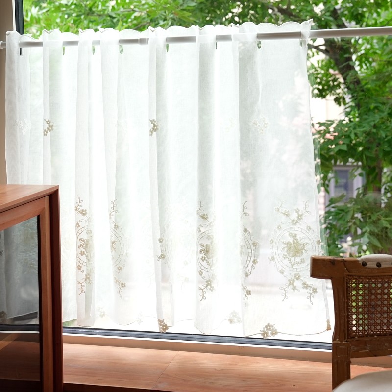 北欧新中式半帘橱柜帘门帘小窗帘短帘免打孔遮景纱帘 镜中花半帘