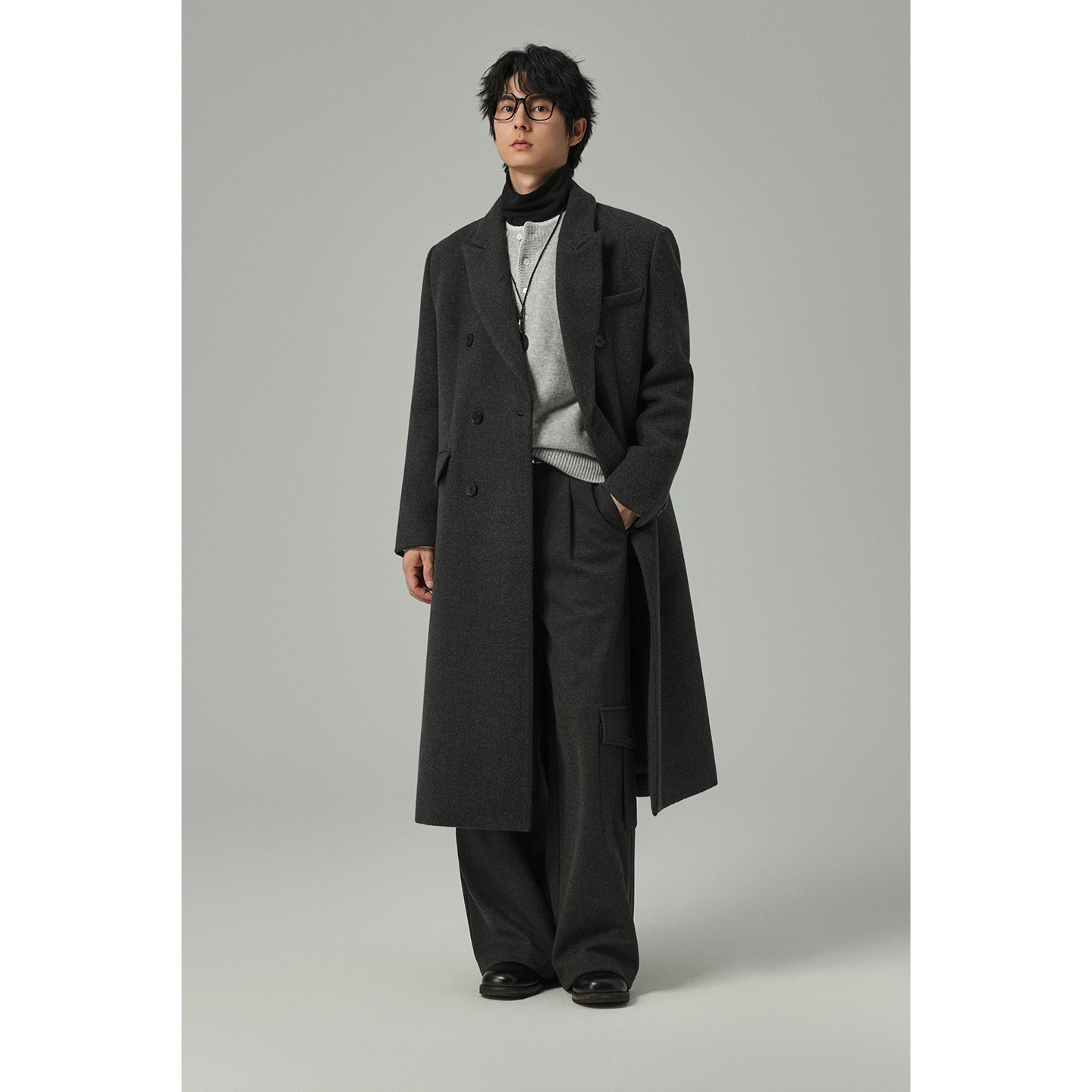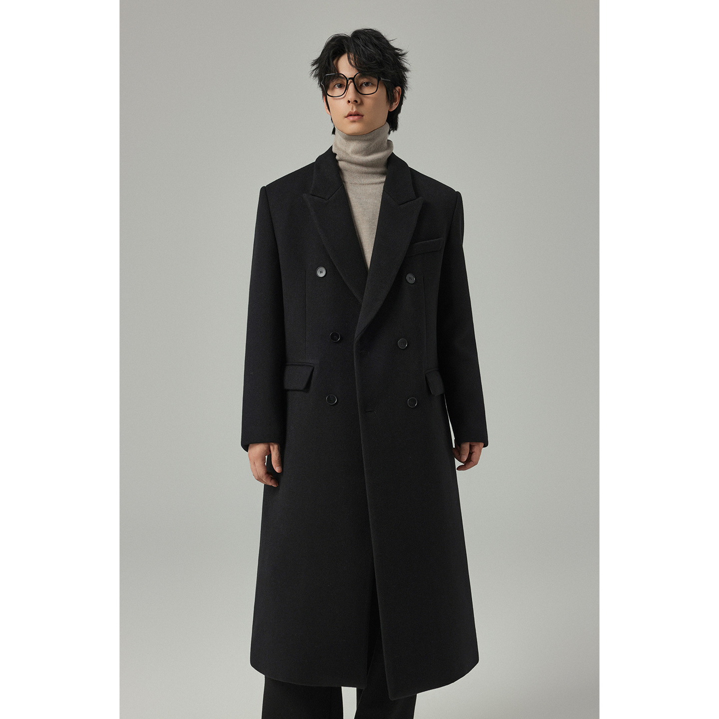 双排扣保暖加厚轻奢老钱风过膝长款大衣外套男含羊毛呢子戗驳领男