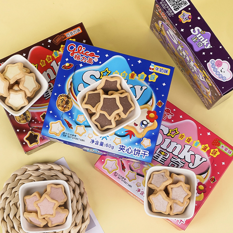 格力高星奇夹心饼干星星巧克力味儿童零食蛋糕装饰五角星摆件装扮