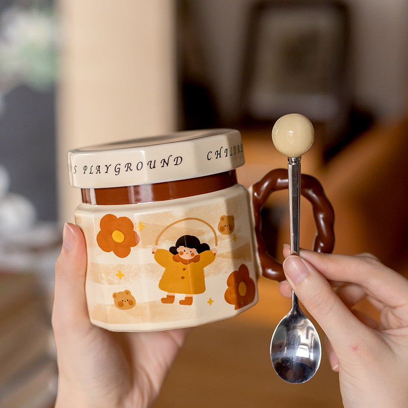 复古女孩马克杯家用陶瓷杯子送女生日礼物伴手礼盒水杯情侣咖啡杯