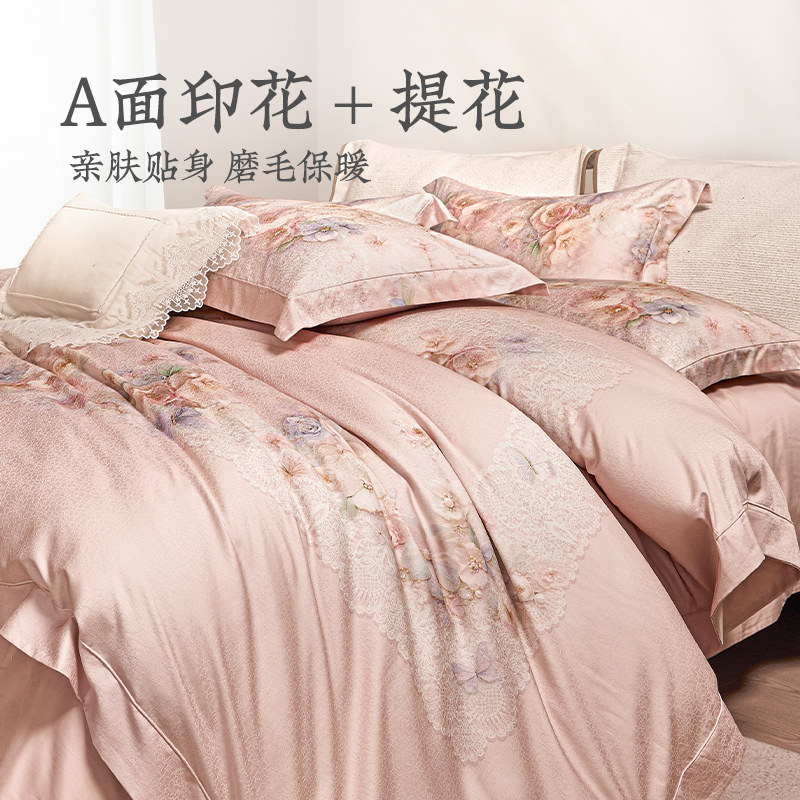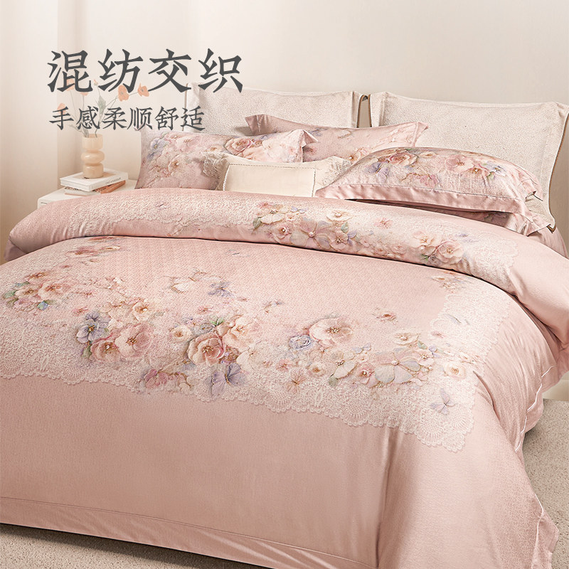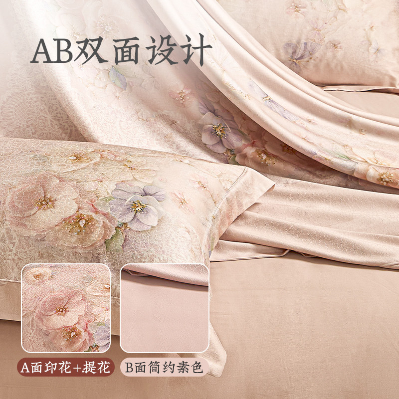 远梦四件套轻磨毛贡缎莱赛尔棉床单被套轻奢高端床上用品商超同款