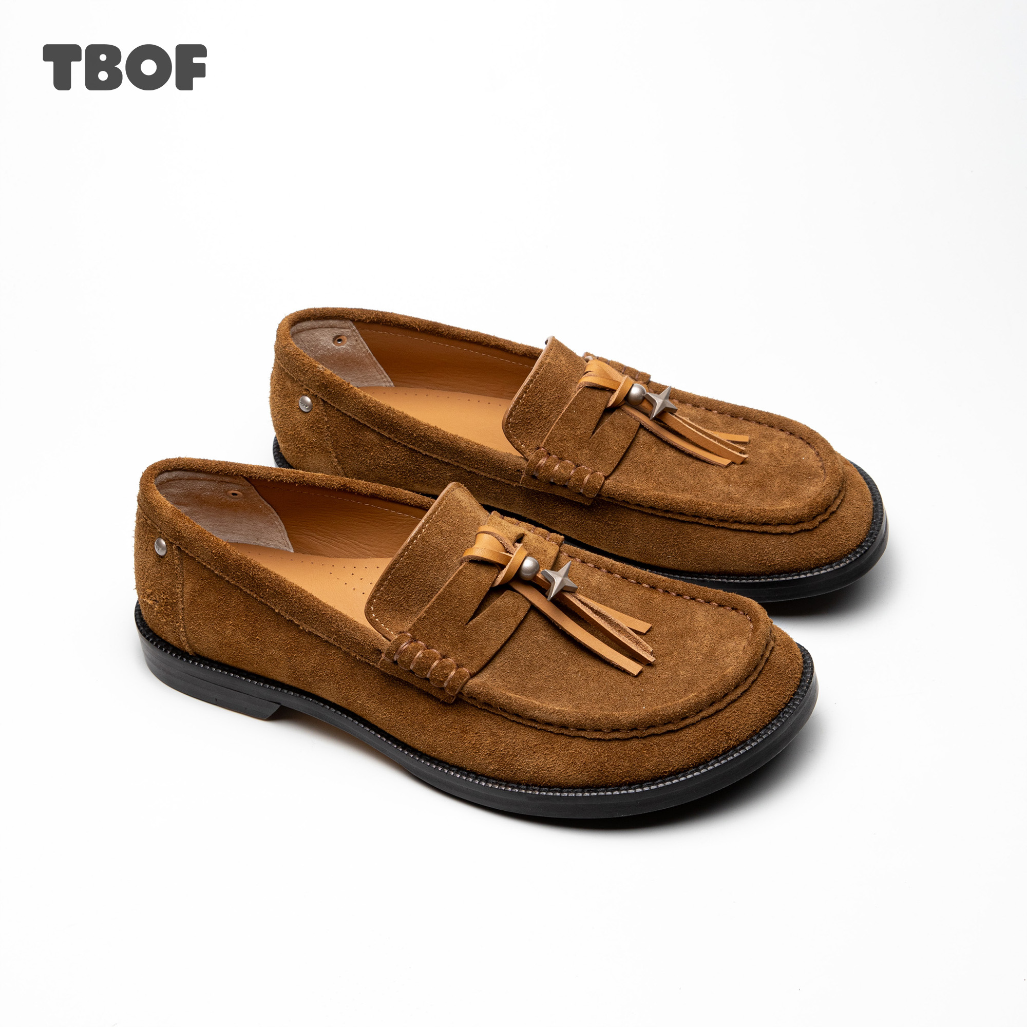 TBOF【歪头乐福鞋L001】牛反绒星芒复古老钱风一脚蹬勃肯头皮鞋男