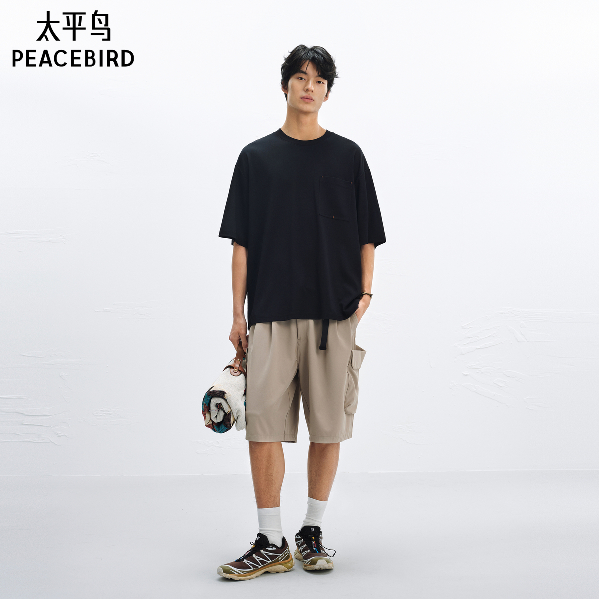 【凉感防晒】太平鸟男装胸前刺绣口袋短袖T恤夏新款重磅纯色体恤