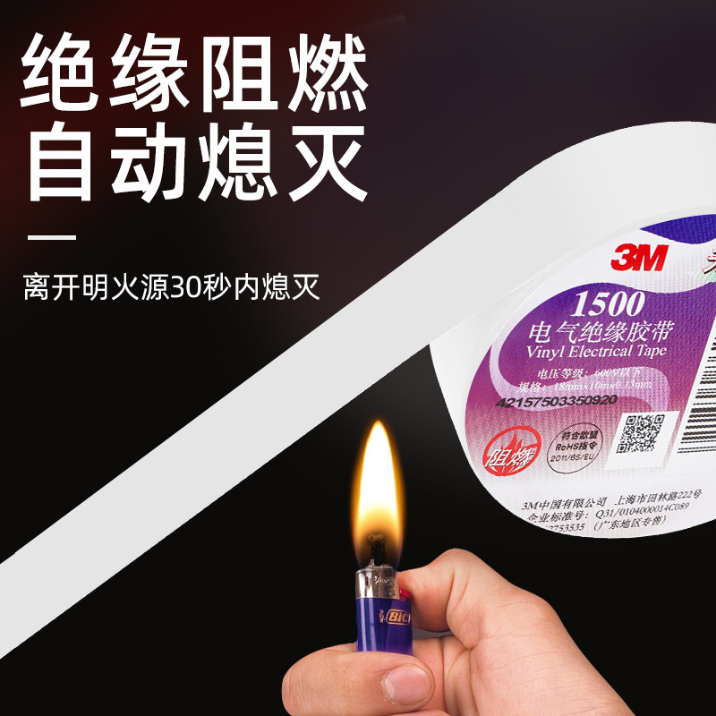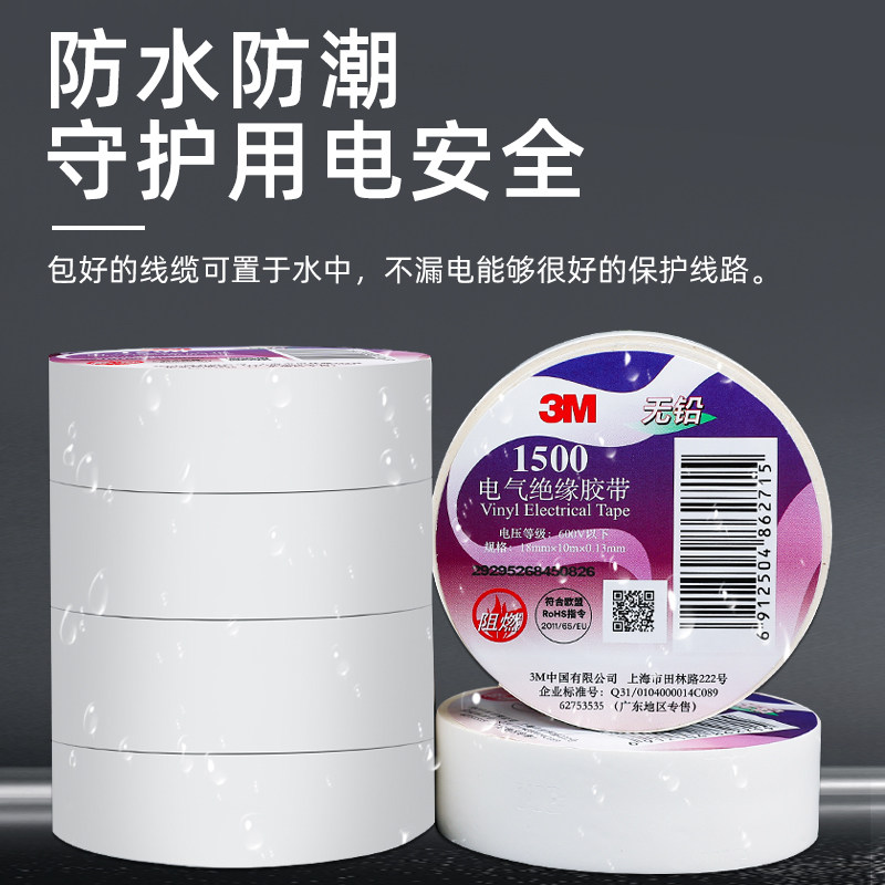 3m1500电工胶布高粘白色电气绝缘胶带通用阻燃耐高温电工专用装修电线电路捆绑整理PVC胶带无铅环保防水防潮