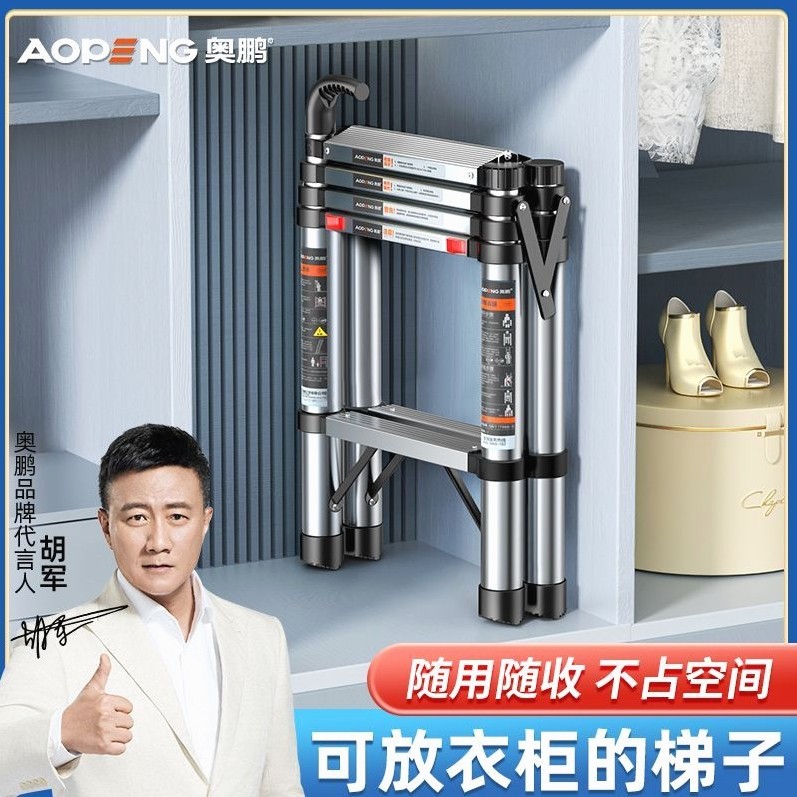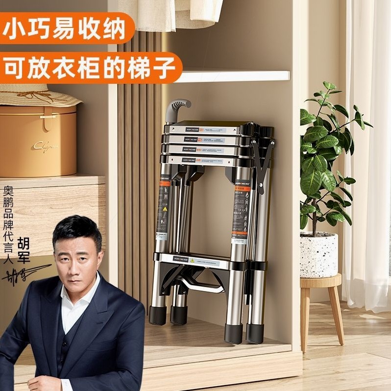 德国进口奥鹏多功能家用伸缩梯子加厚不锈钢折叠小梯子室内便携升