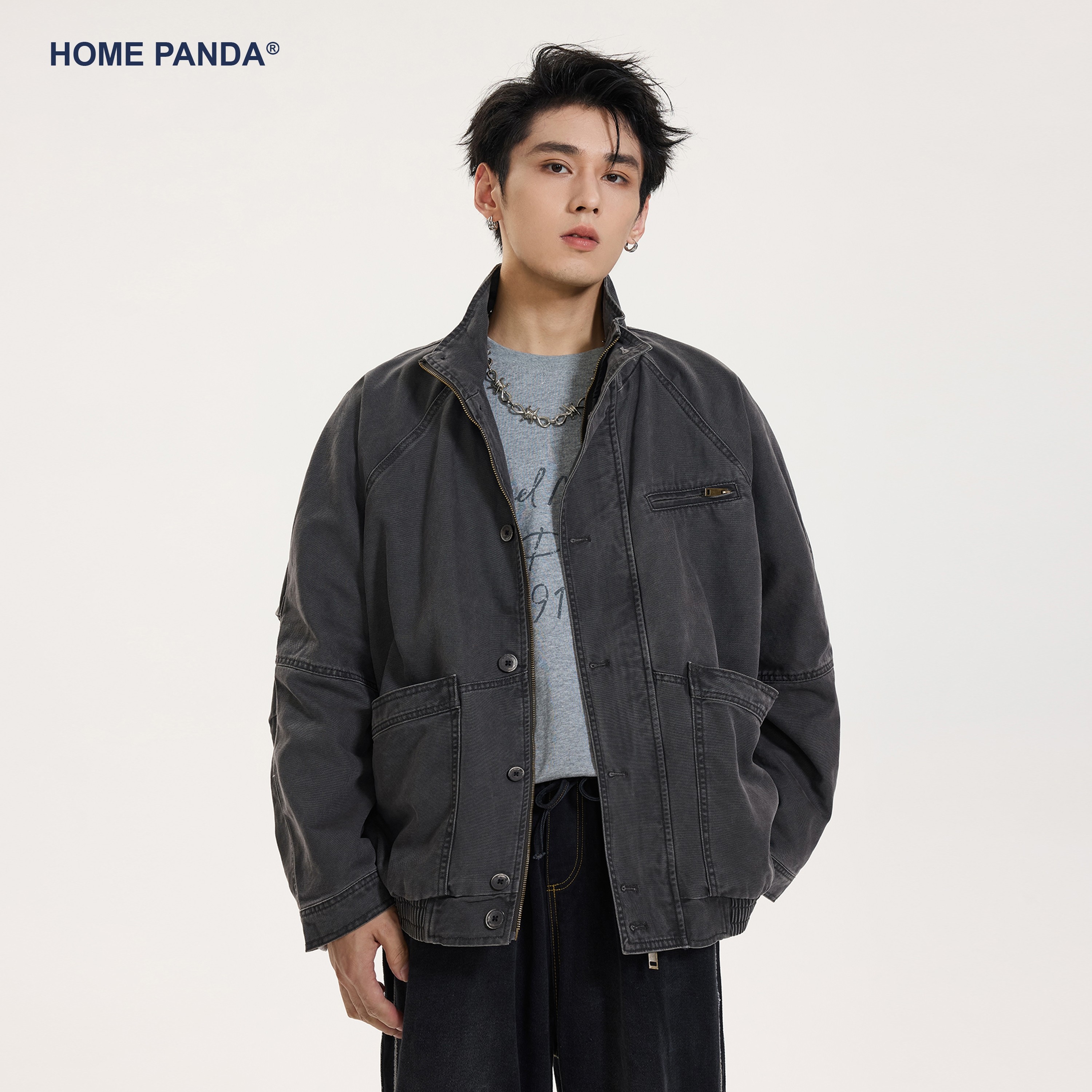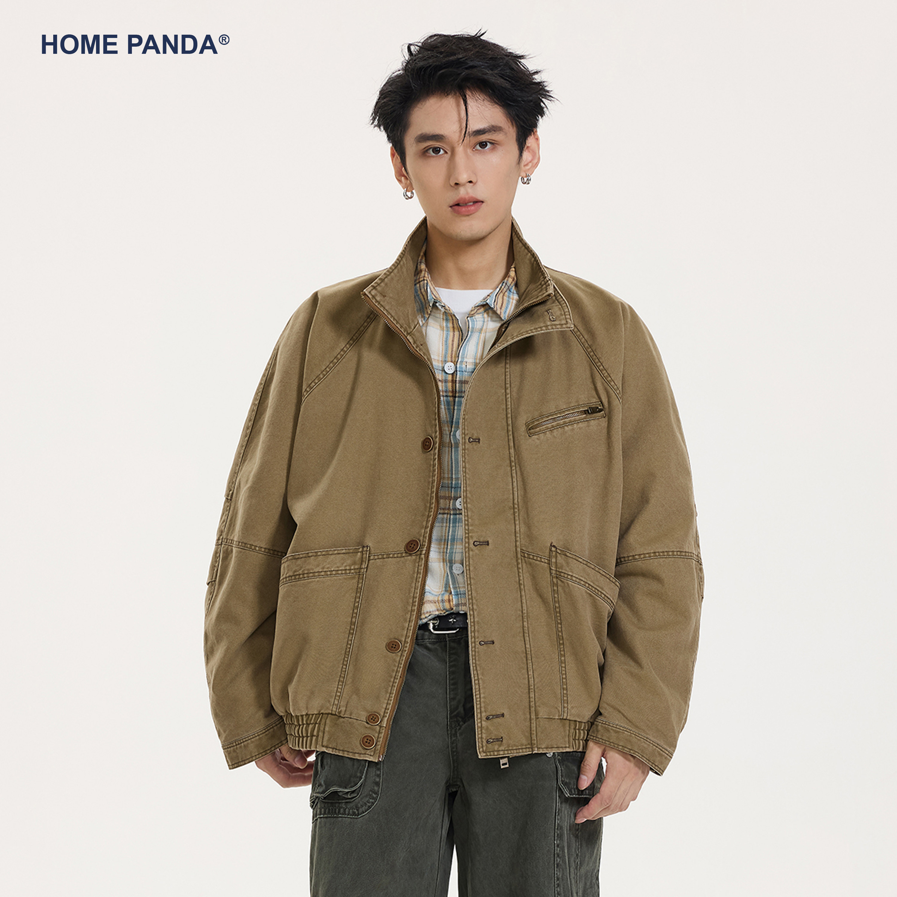 HomePanda底特律立领外套男春季美式复古ins水洗做旧休闲工装夹克