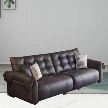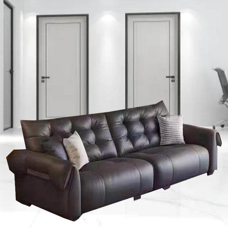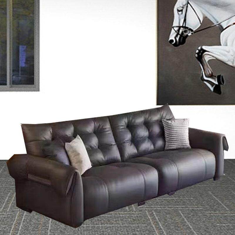 现代简约沙发意式极简客厅轻奢直排皮艺沙发