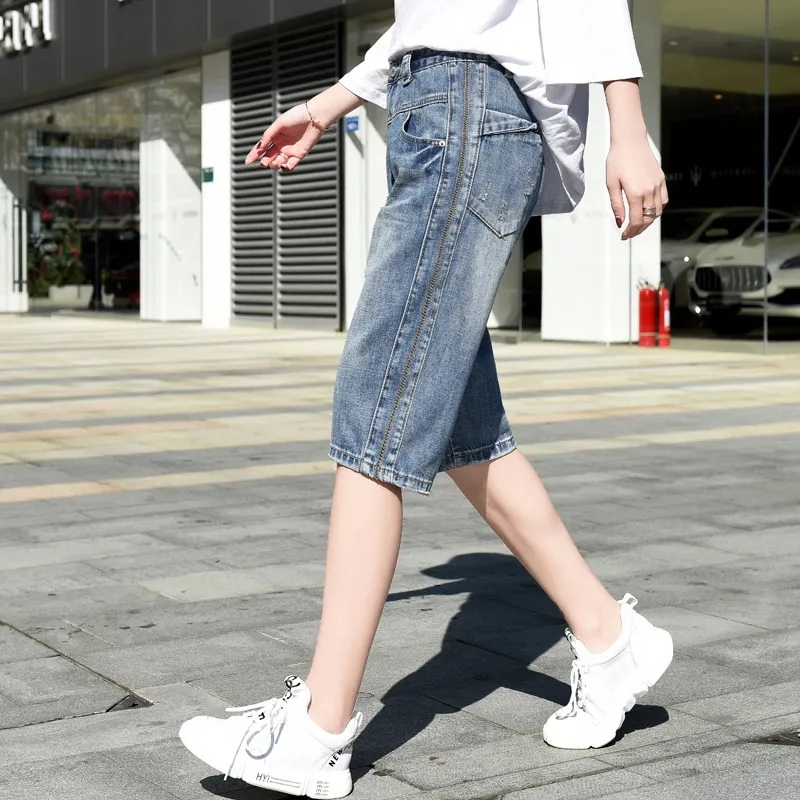 韩版六分短裤女牛仔裤女宽松夏季薄款中筒裤高腰显瘦五分直筒中裤