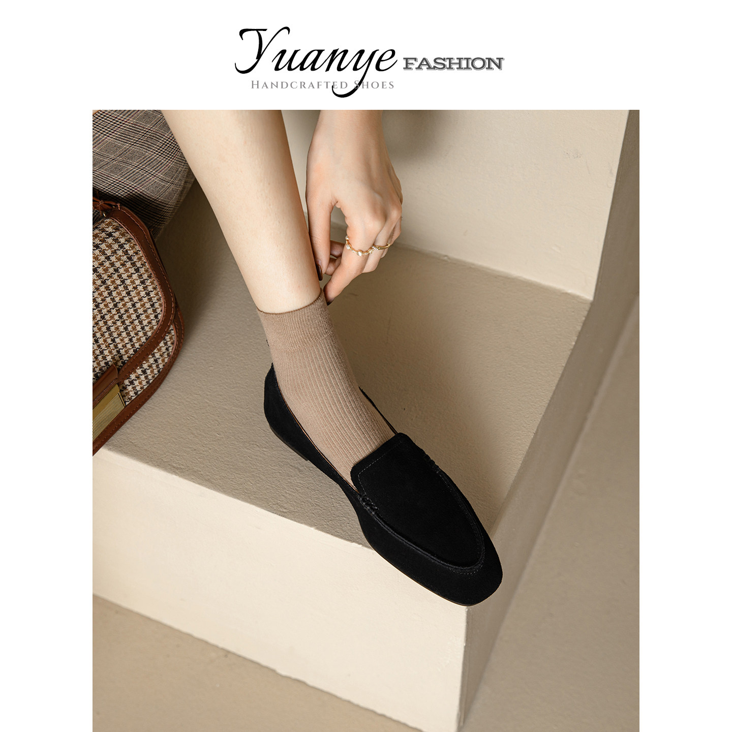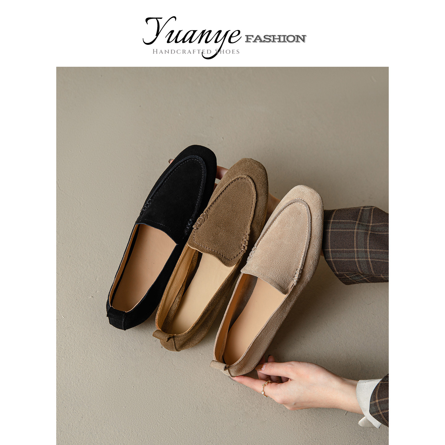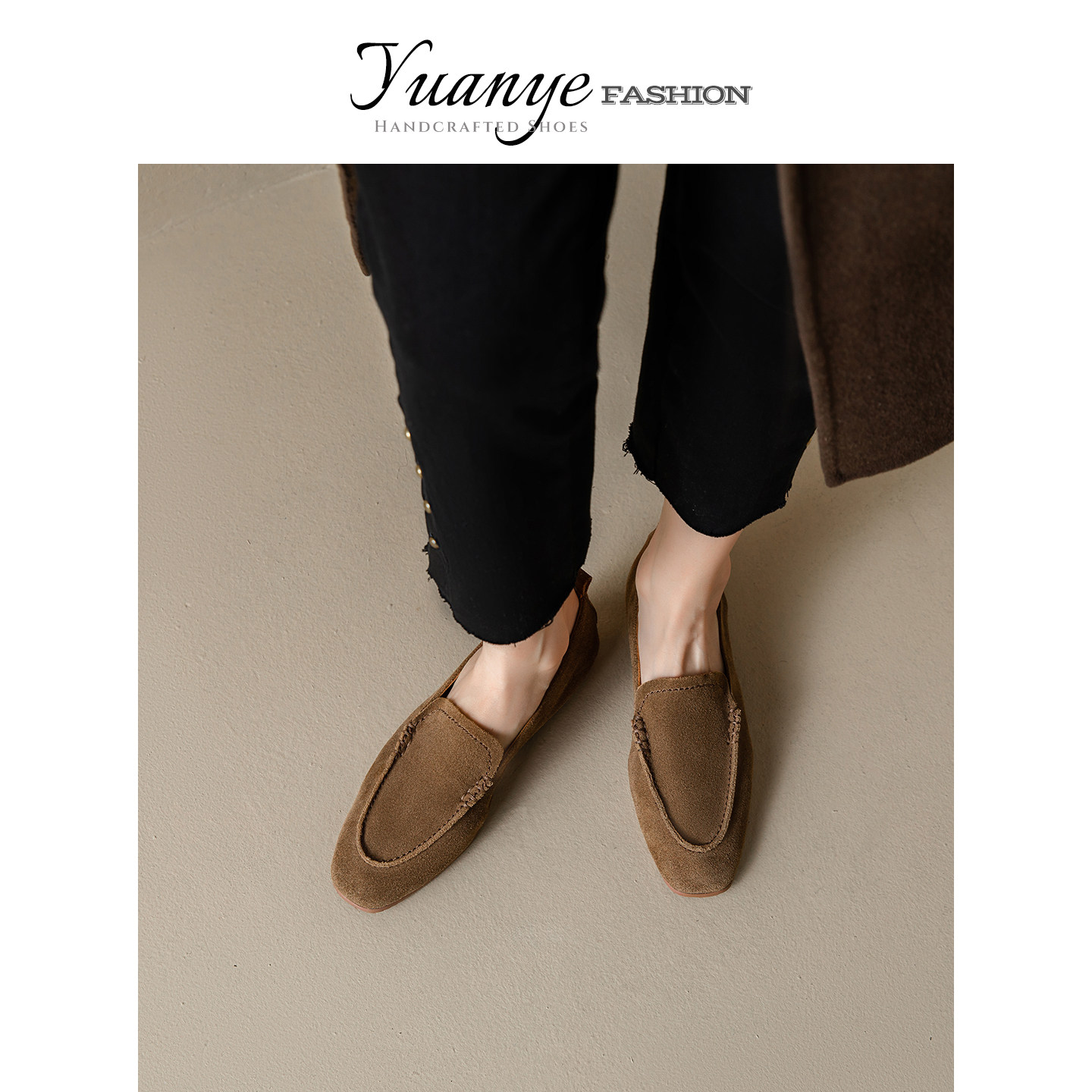 原野Yuanye●沅芷澧兰!棕色磨砂翻毛皮乐福鞋一脚蹬平底浅口单鞋