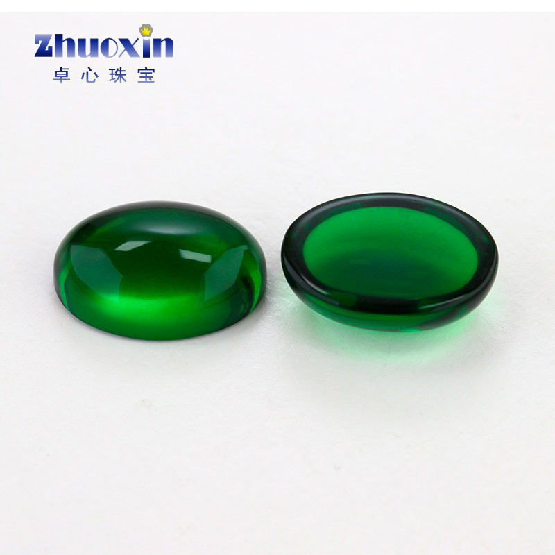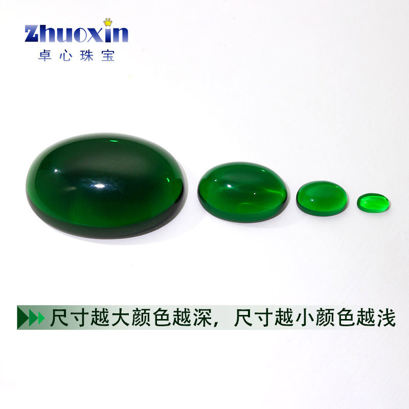 椭圆形平底素面绿玻戒面裸石 蛋形蛋面光面绿色玻璃DIY饰品主石钻