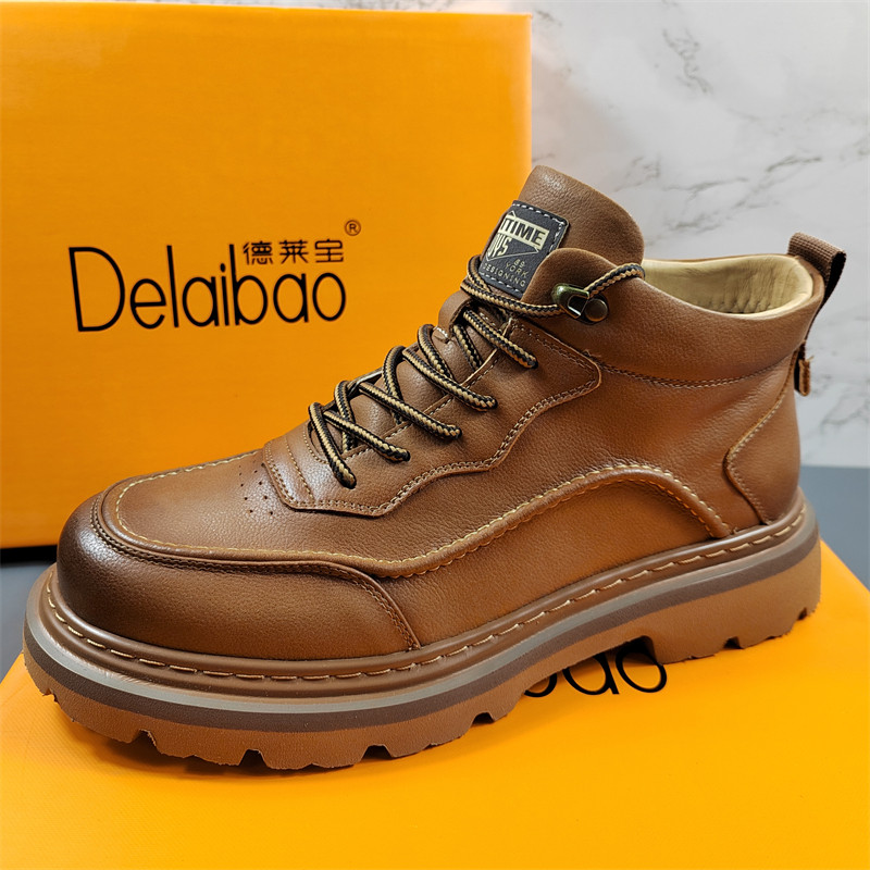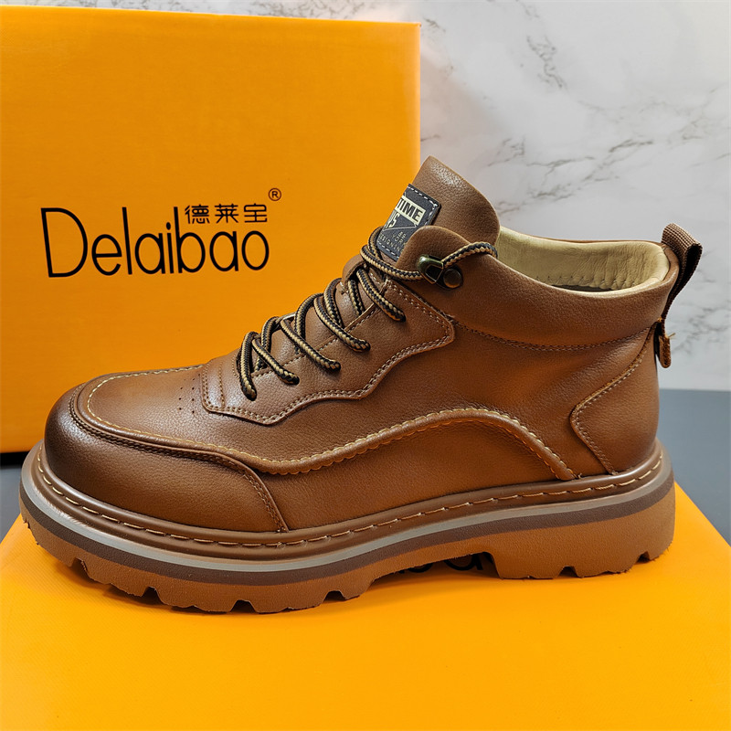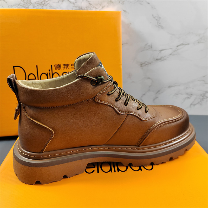 商场同款真皮男鞋马丁靴男高帮鞋冬季英伦风工装靴厚底皮鞋机车靴