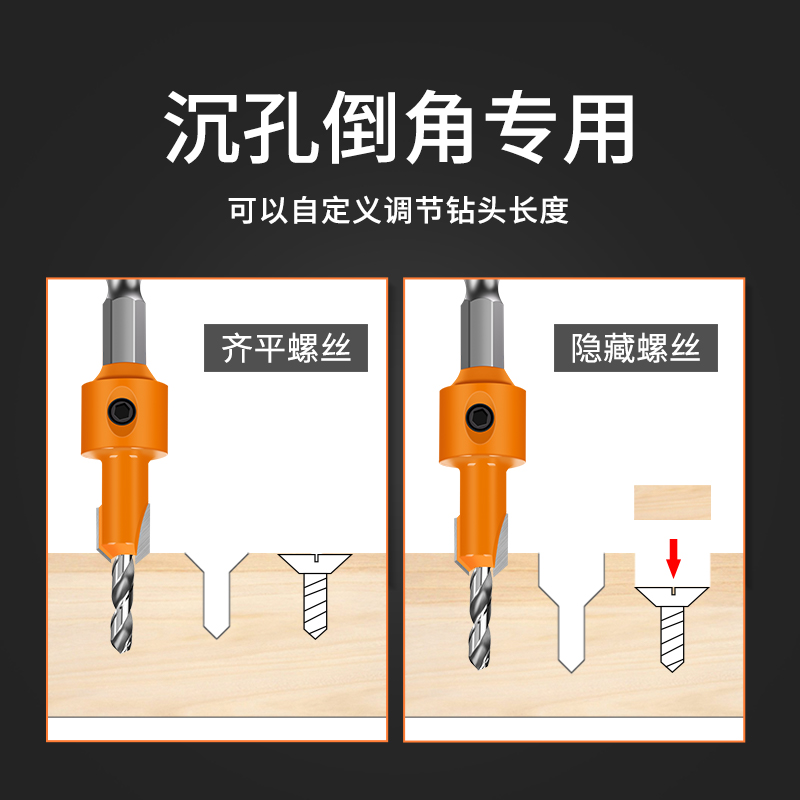 沉孔钻头六角柄螺丝锥孔沉头钻中心钻阶梯钻沙拉钻开孔木工开孔器