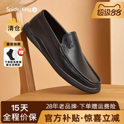 蜘蛛王男鞋官方旗舰店正品皮鞋男款2025秋夏新款休闲一脚蹬爸爸鞋