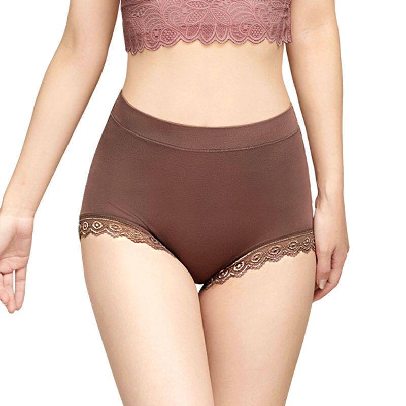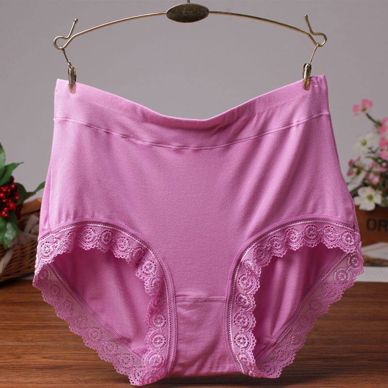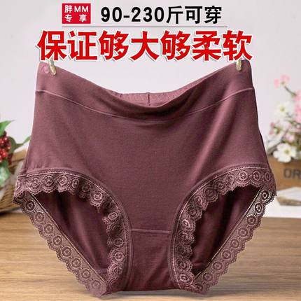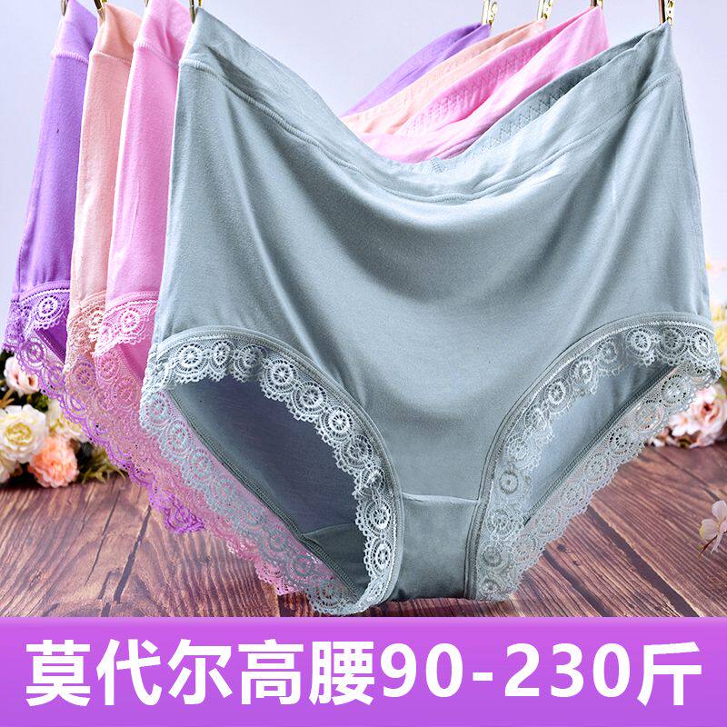 莫代尔高腰大码内裤女200斤性感蕾丝收腹纯棉裆透气中老年三角裤