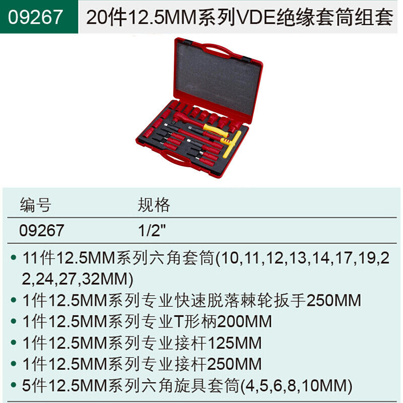 世达工具箱组合套装VDE绝缘套筒组套 绝缘套筒工具