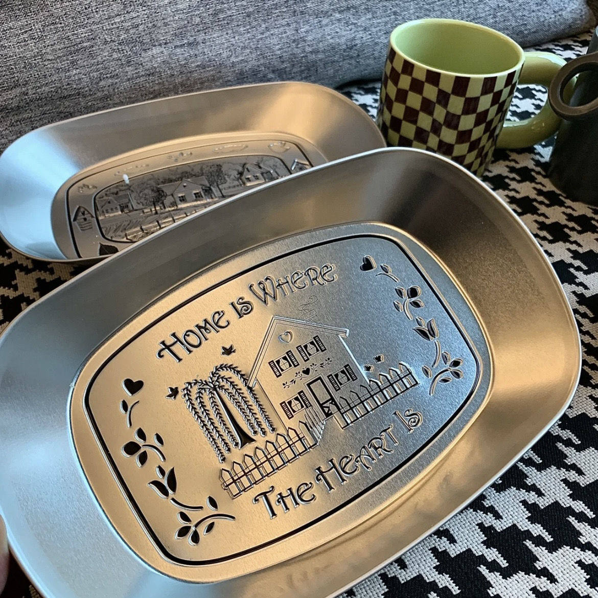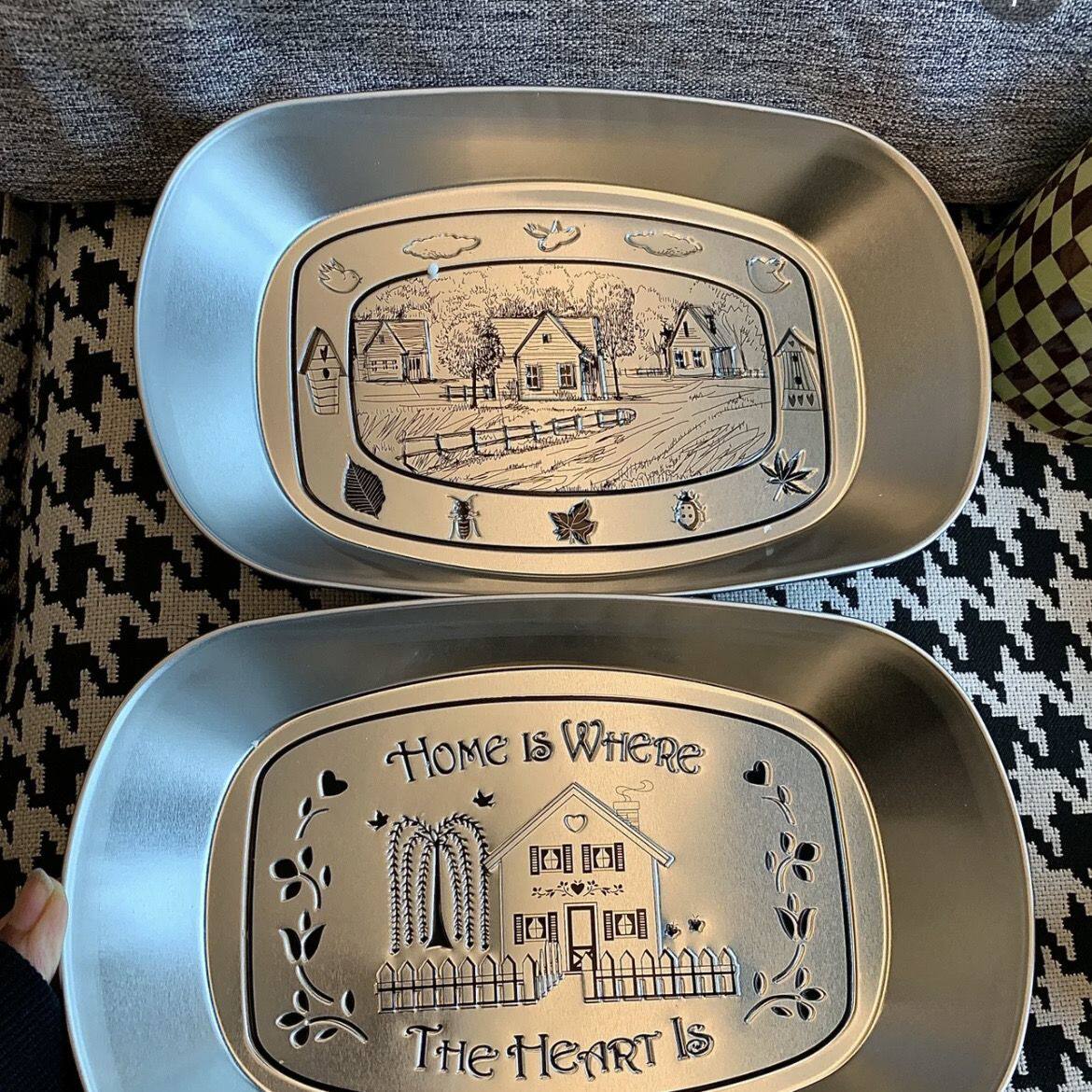 小红书复古托盘美式马口铁家用不锈钢餐盘小吃水果盘文具笔收纳