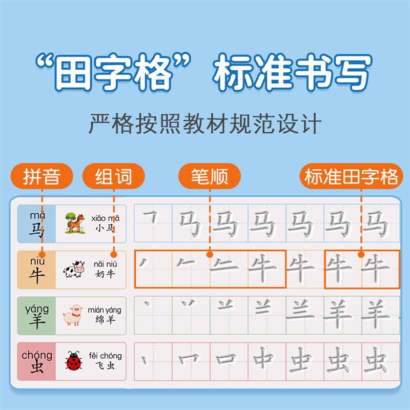 汉字凹槽练字帖幼儿园幼小衔接小中大班汉字笔画笔顺写字帖控笔训练专用练字本幼儿教材全套汉字初学者入门临摹练习每日一练描红本