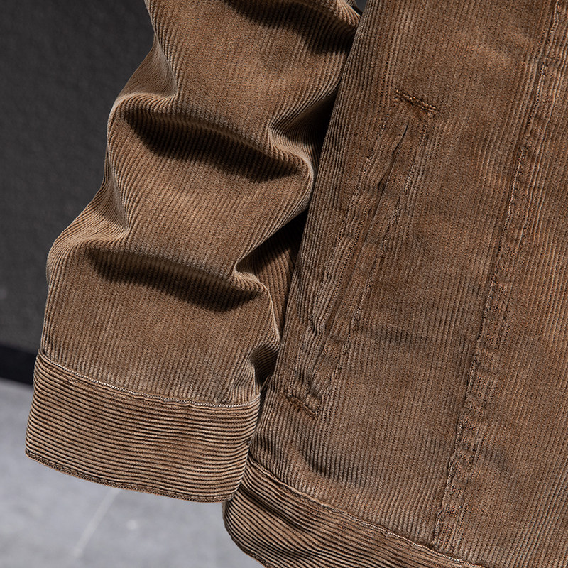 高品质立领休闲外套男底特律宽松灯芯绒潮流夹克驼色大码复古伽克