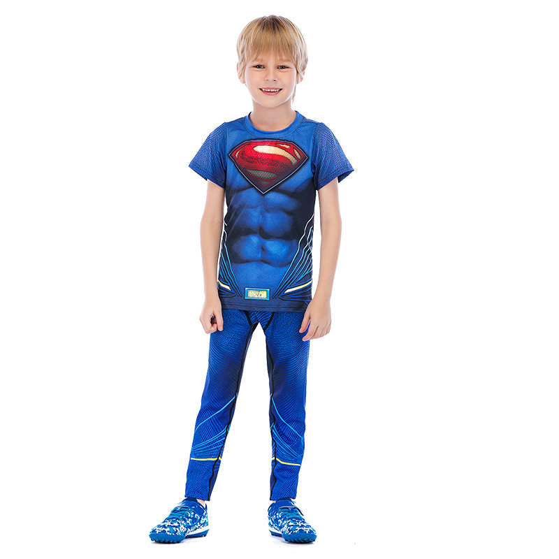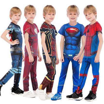 儿童运动套装男蜘蛛侠美国队长超人紧身衣短袖T恤长裤速干训练服