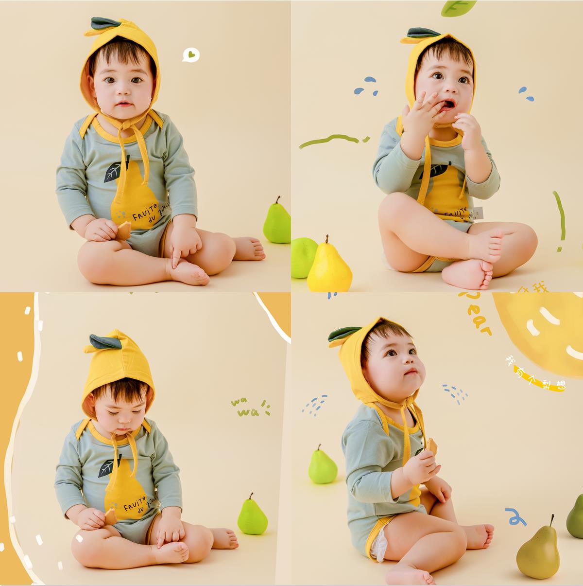 儿童摄影服装小小梨想水果卡通主题宝宝百天照周岁照拍照服装道具