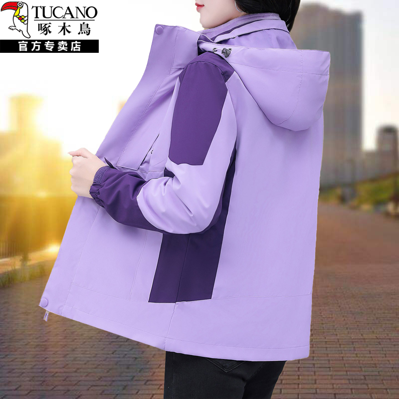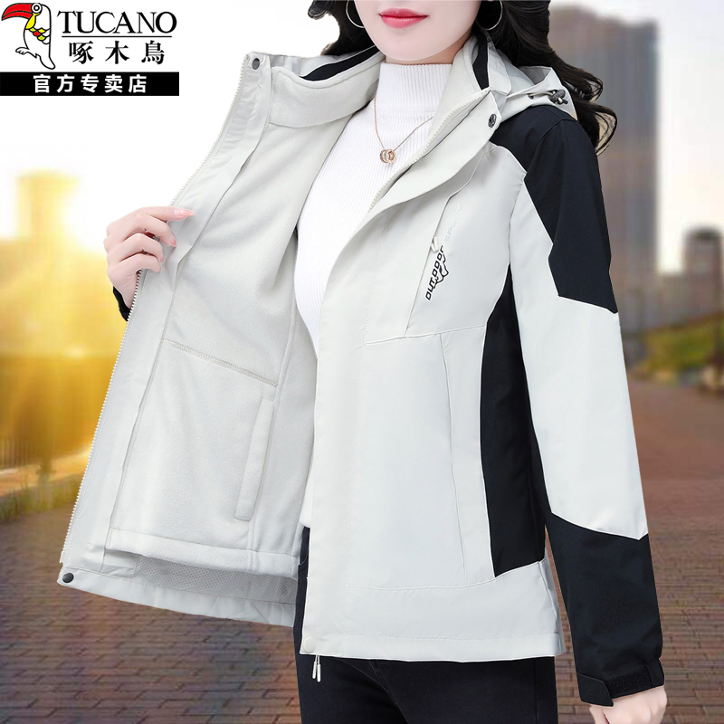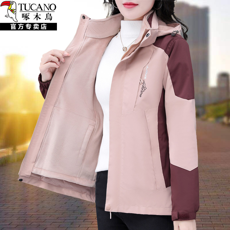啄木鸟冲锋衣女款户外三合一可拆卸2025新款秋冬宽松加绒加厚外套