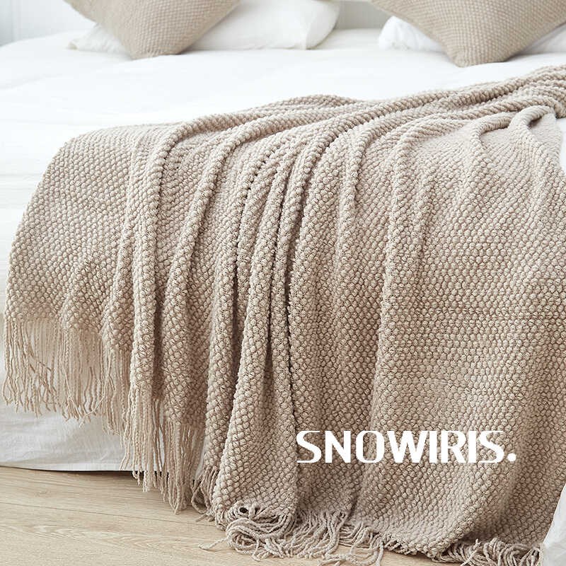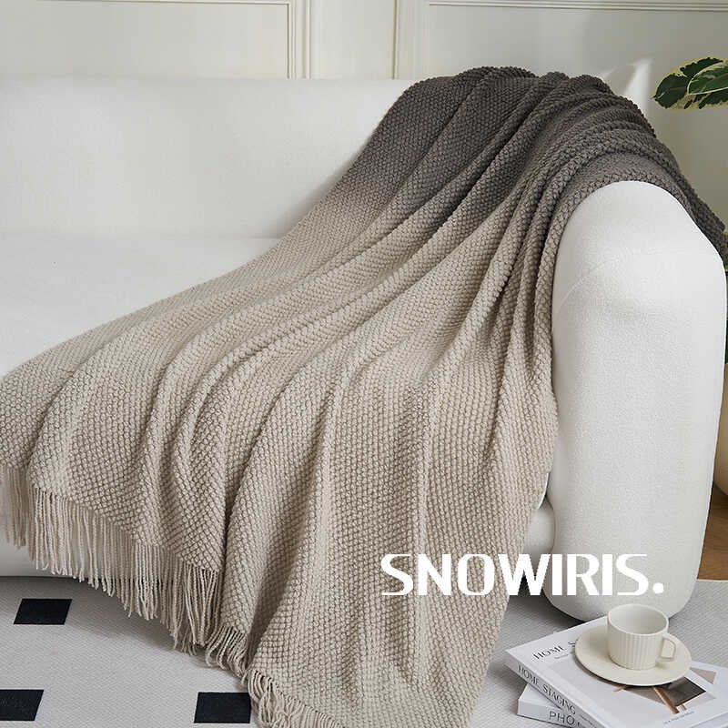 中古风高级感沙发毯子灰白简约渐变色针织毛毯客厅装饰午休盖搭毯