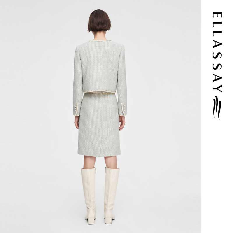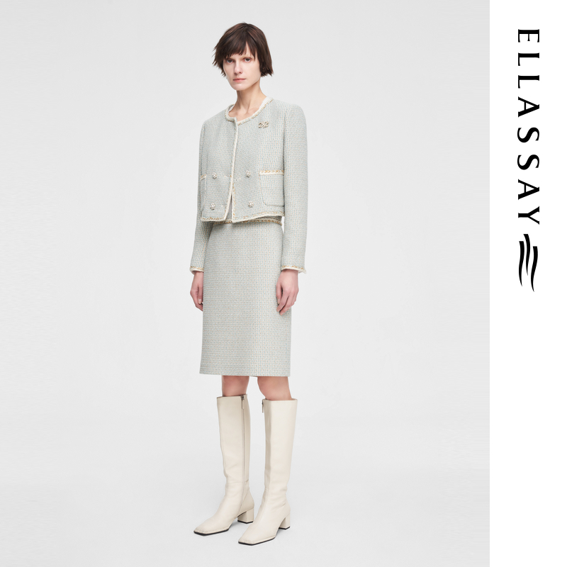 歌力思奥莱春季新款羊毛小香风圆领短外套女EWE351T01100