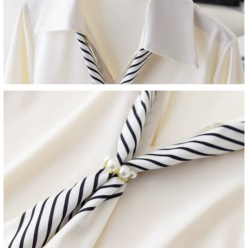 法式飘带长袖雪纺衬衫女士2026春季新款缎面职业通勤上衣气质显瘦