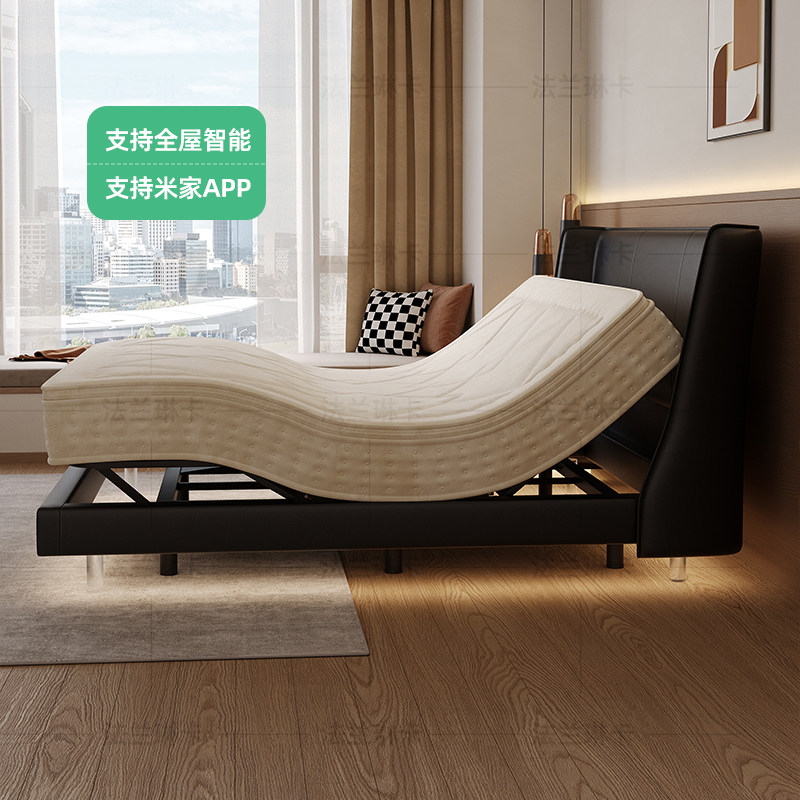 斯帝罗兰全屋智能控制电动床可升降意式极简约现代轻奢真皮大床主