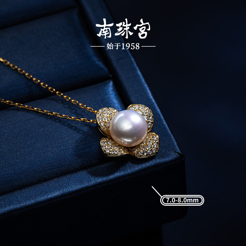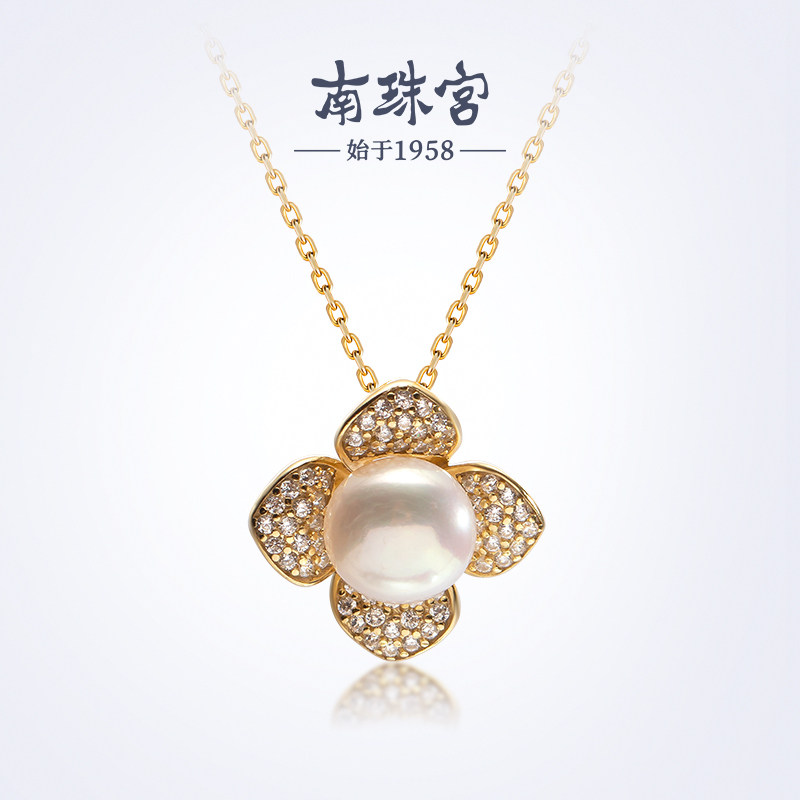 南珠宫蛇年新款 925银淡水珍珠花瓣吊坠 C-D034SD