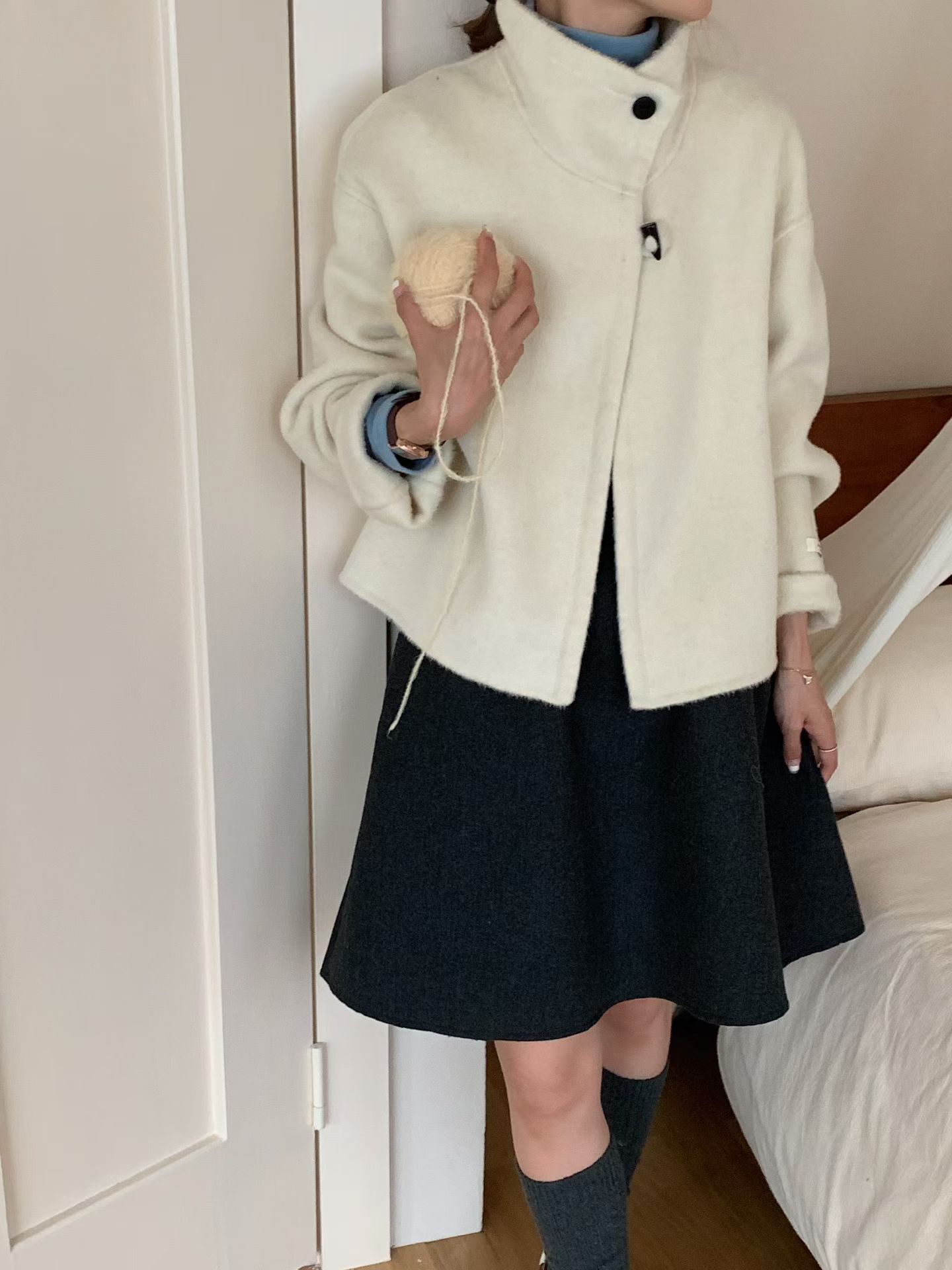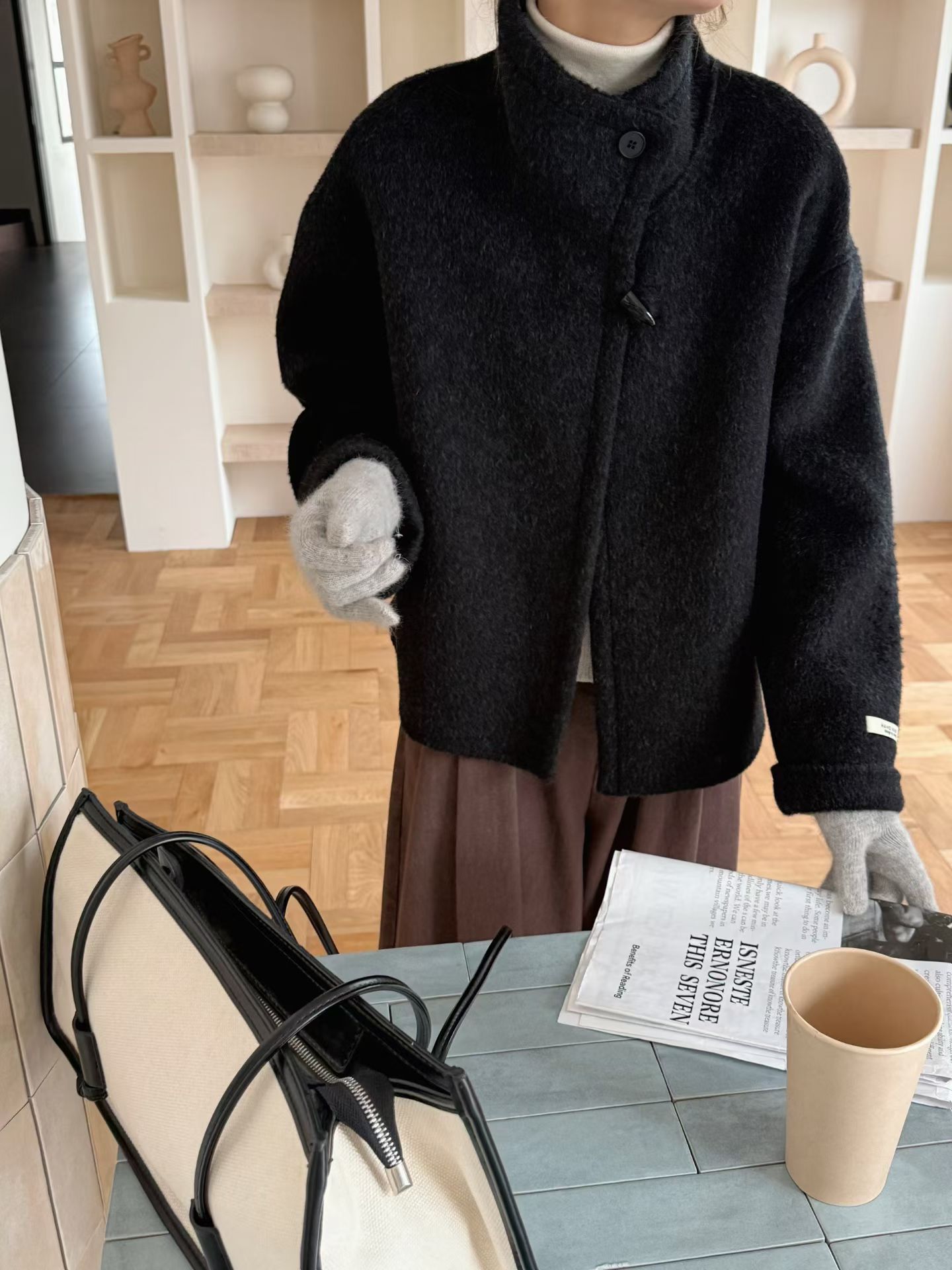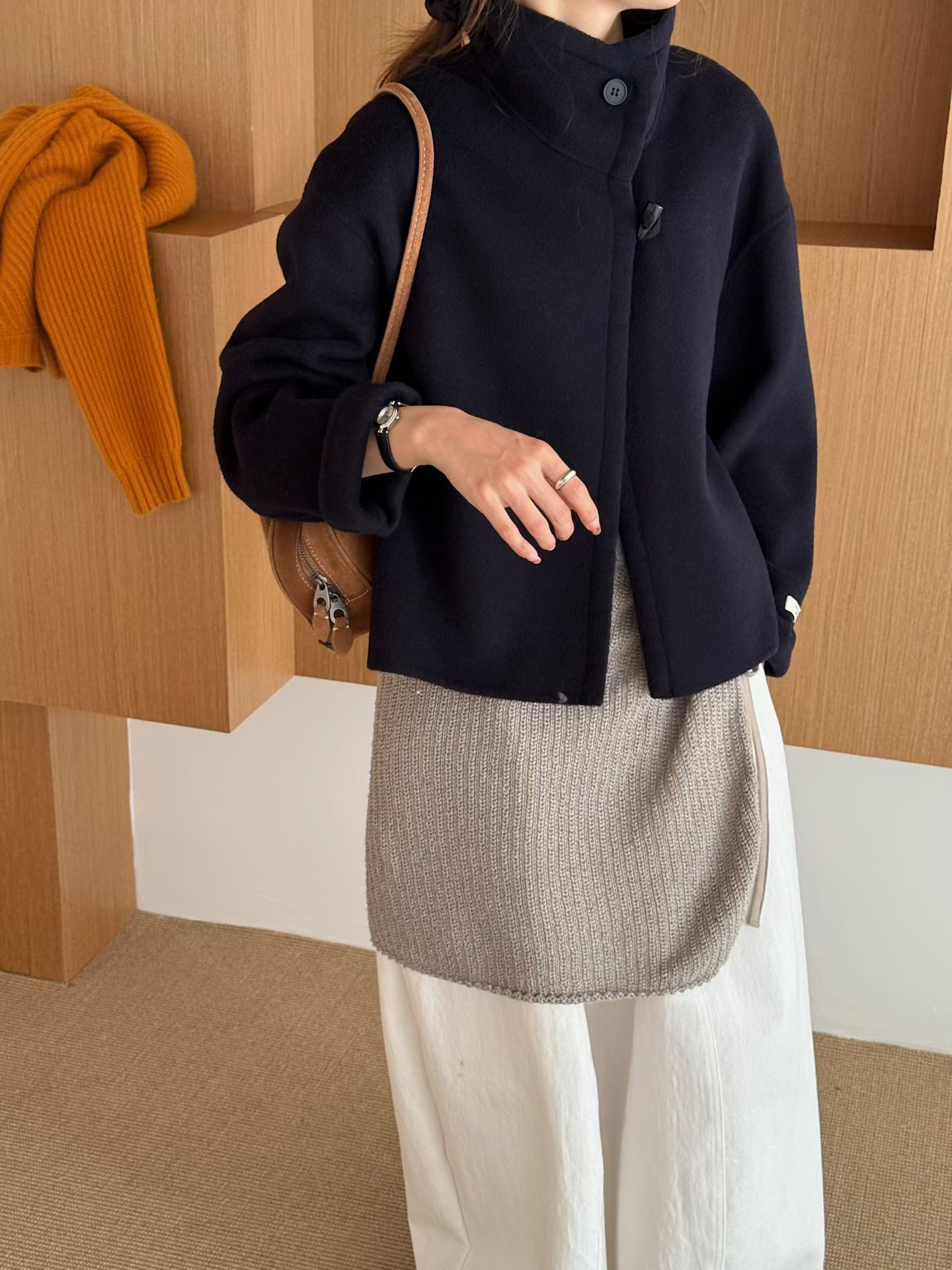2025新款韩版双面羊绒大衣女短款小个子立领休闲简约羊毛呢外套女