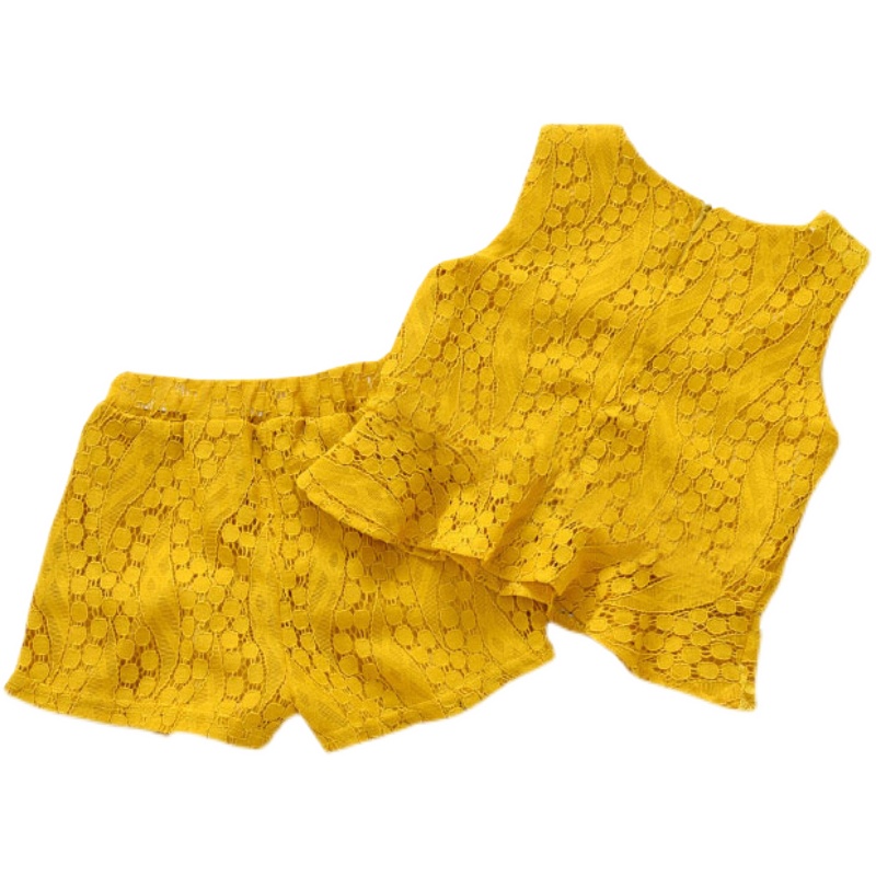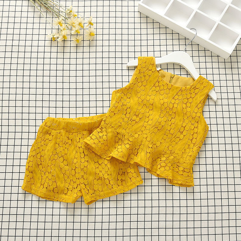 2021夏装新款童装蕾丝镂空钩花套装女宝宝女童背心短裤清爽两件套
