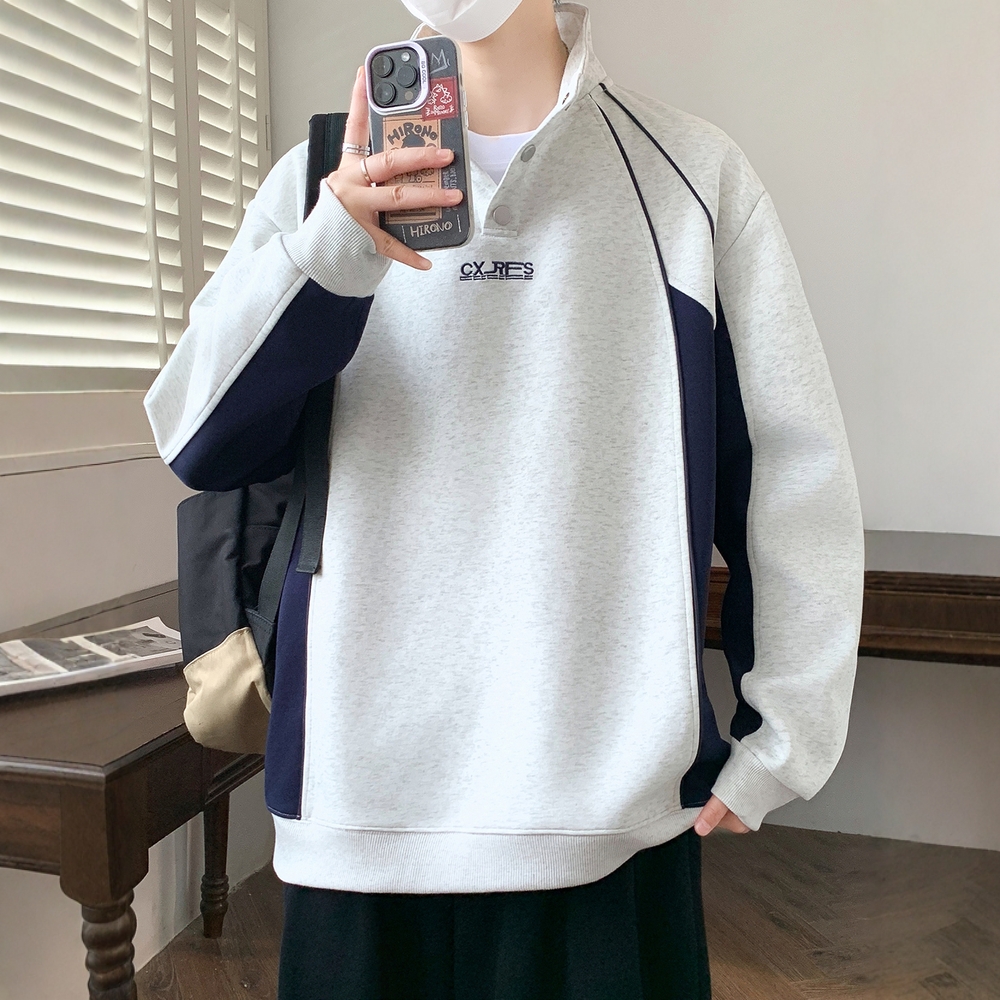 高端灰色立领卫衣外套男春秋季2025新款潮牌宽松长袖T恤男士上衣