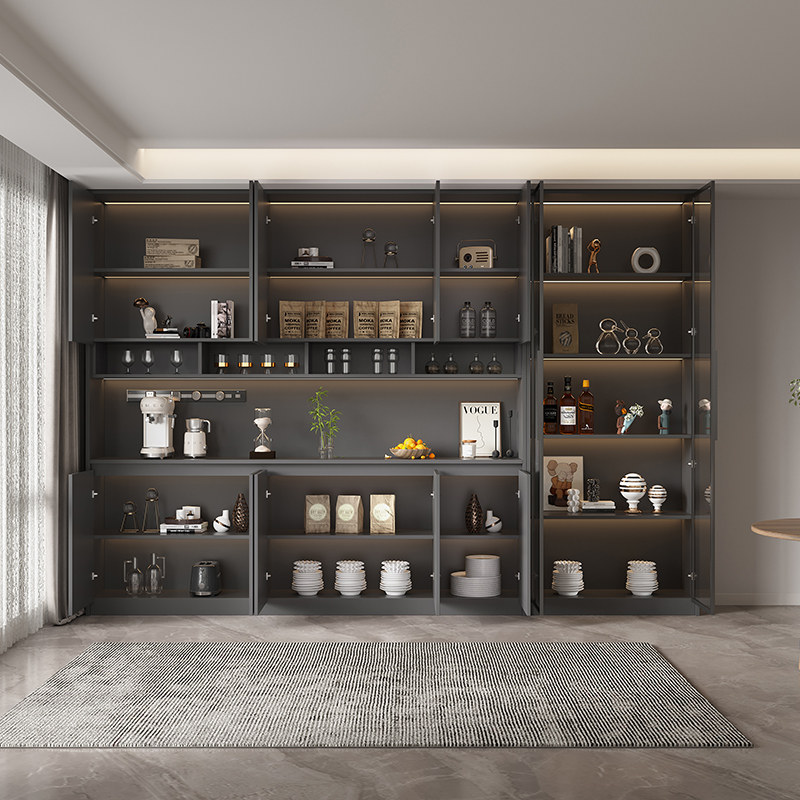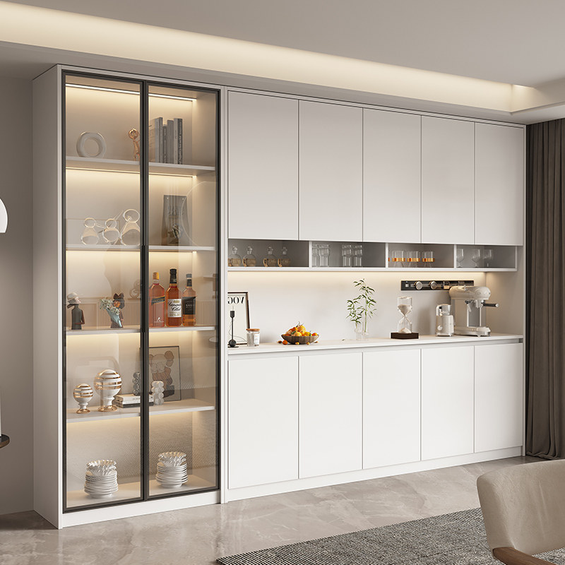 餐边柜家用定制靠墙一体小户型储物柜带玻璃门ENF级欧松板柜子