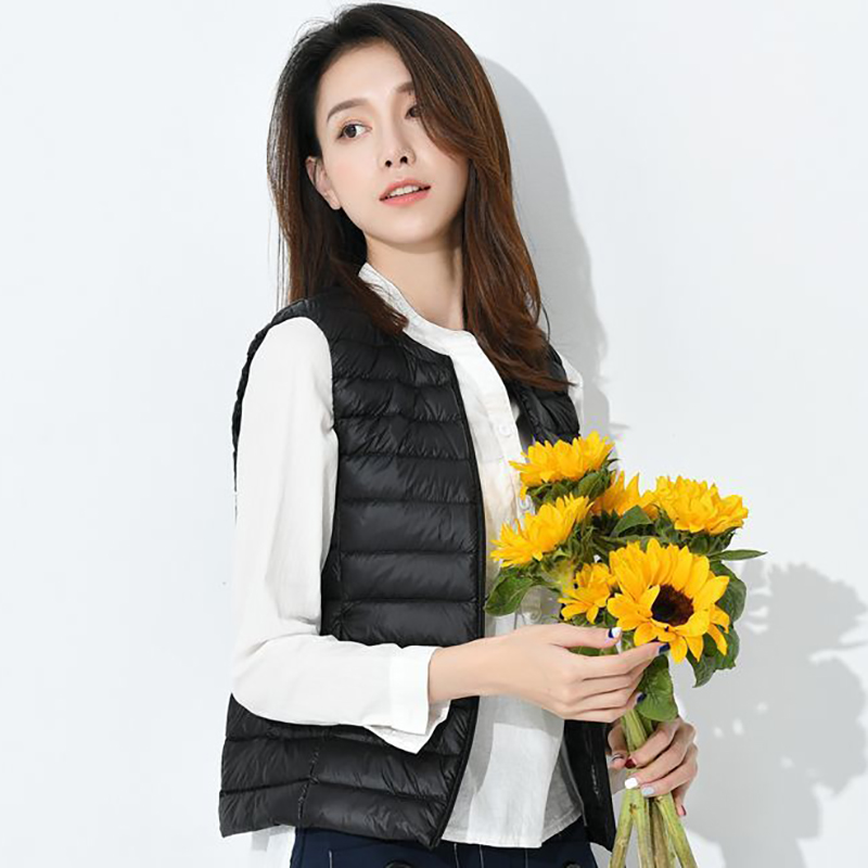 日本优轻薄羽绒马甲女士圆领内胆秋冬2025新款大码羽绒服女短背心