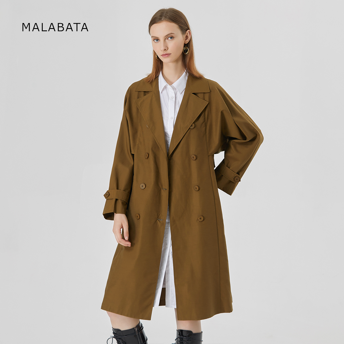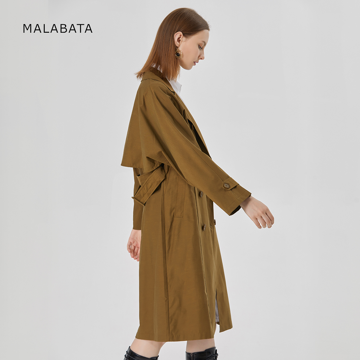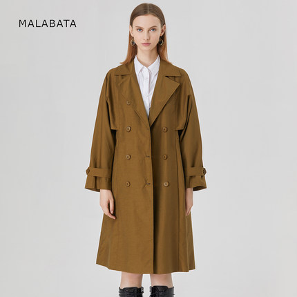 MALABATA风衣外套女春秋2023年新款时尚中长款欧美复古风双排扣