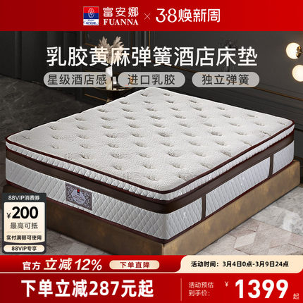 富安娜床垫加厚乳胶床垫羊绒纤维面料静音独簧酒店奢睡黄麻床垫